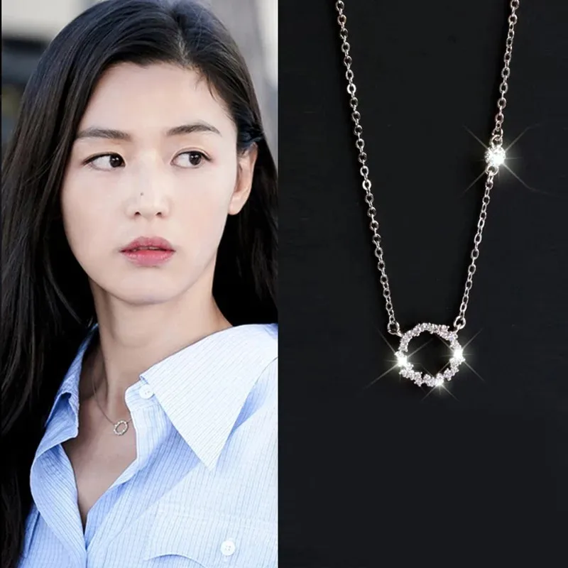 Korean Star Silver Color Crystal Circle Necklaces for Women Wedding Jewelry Long Statement Necklaces
