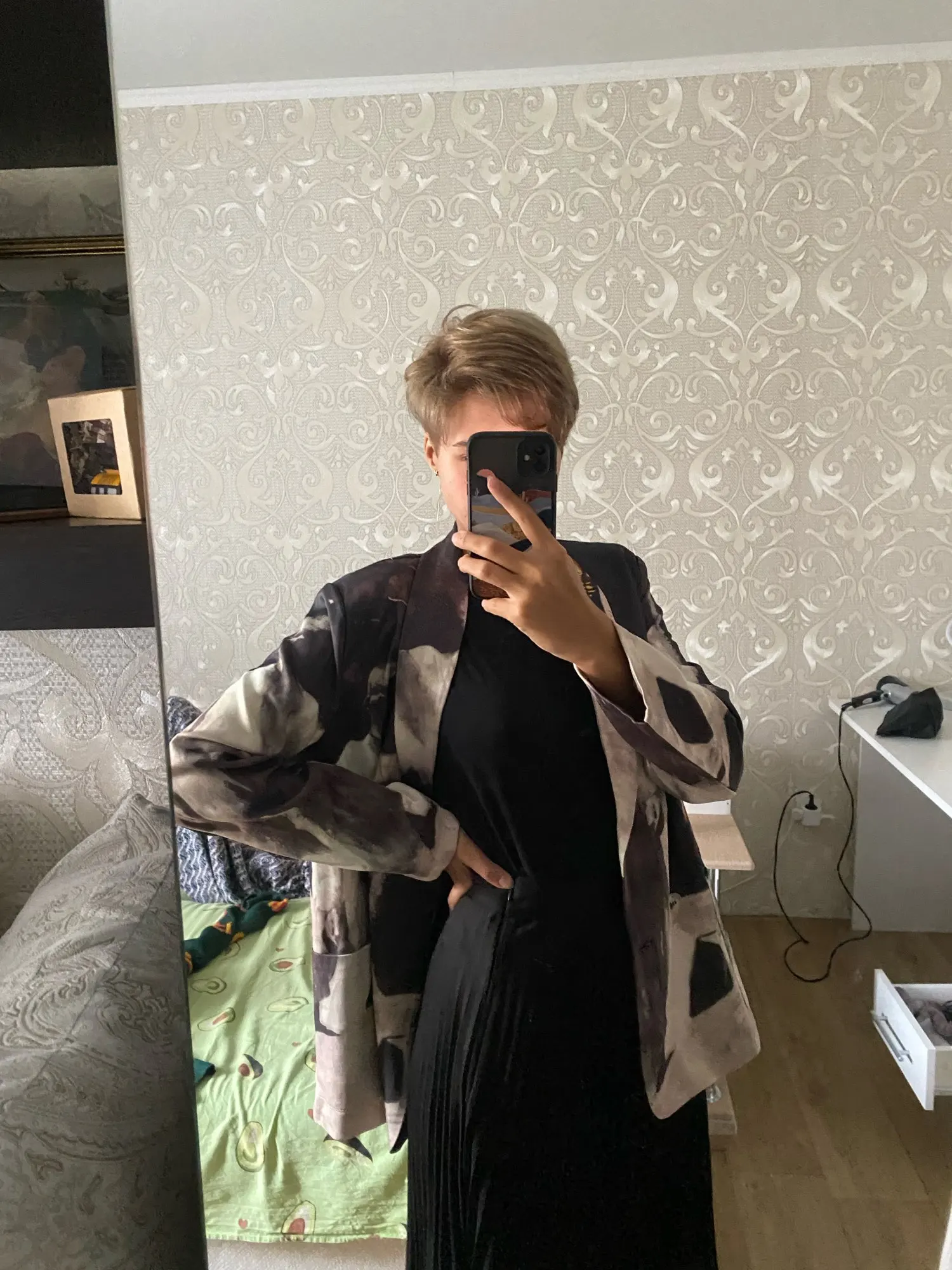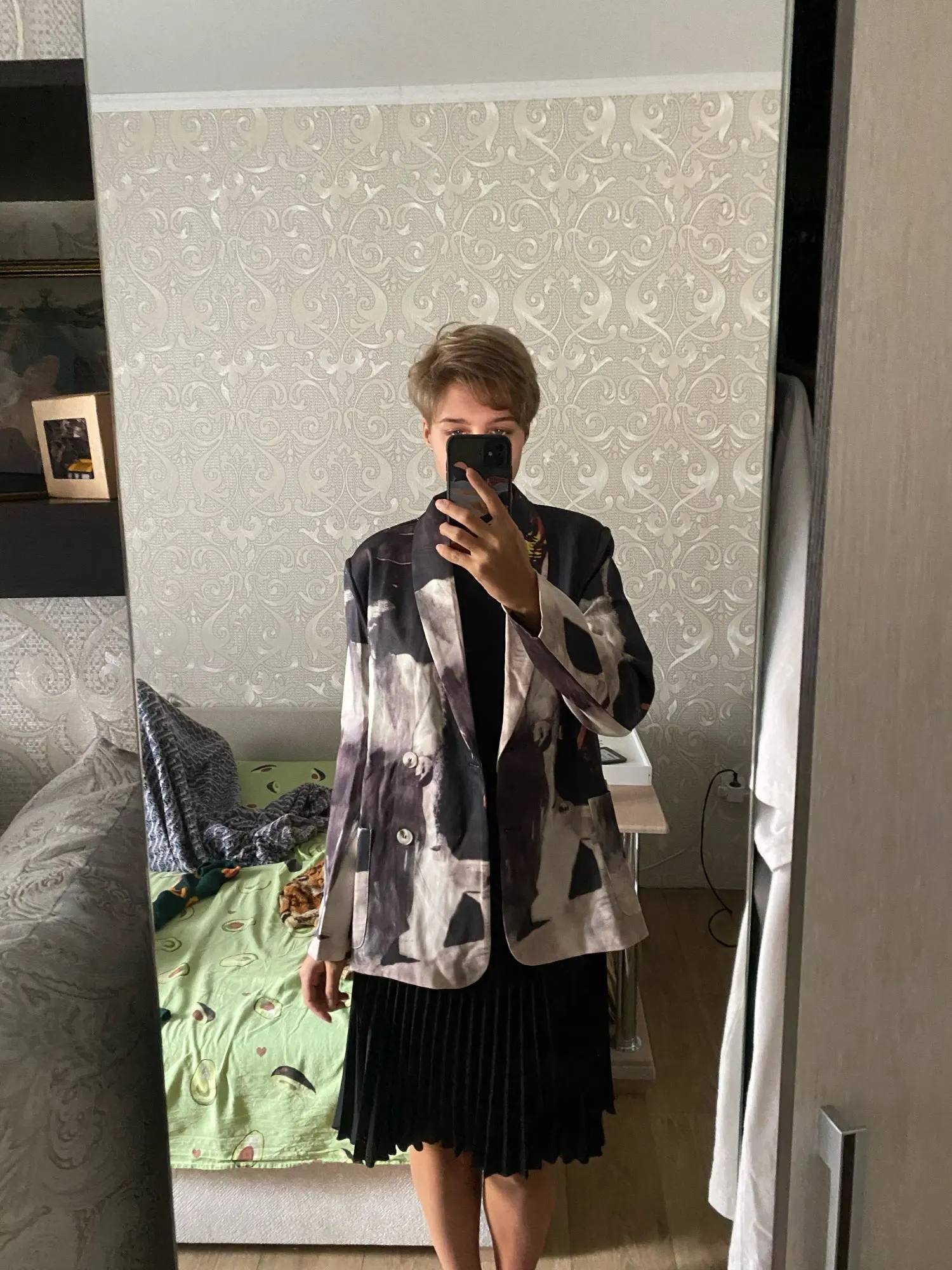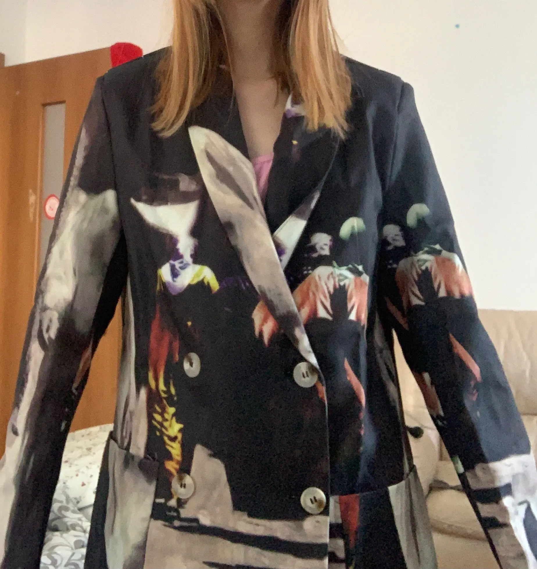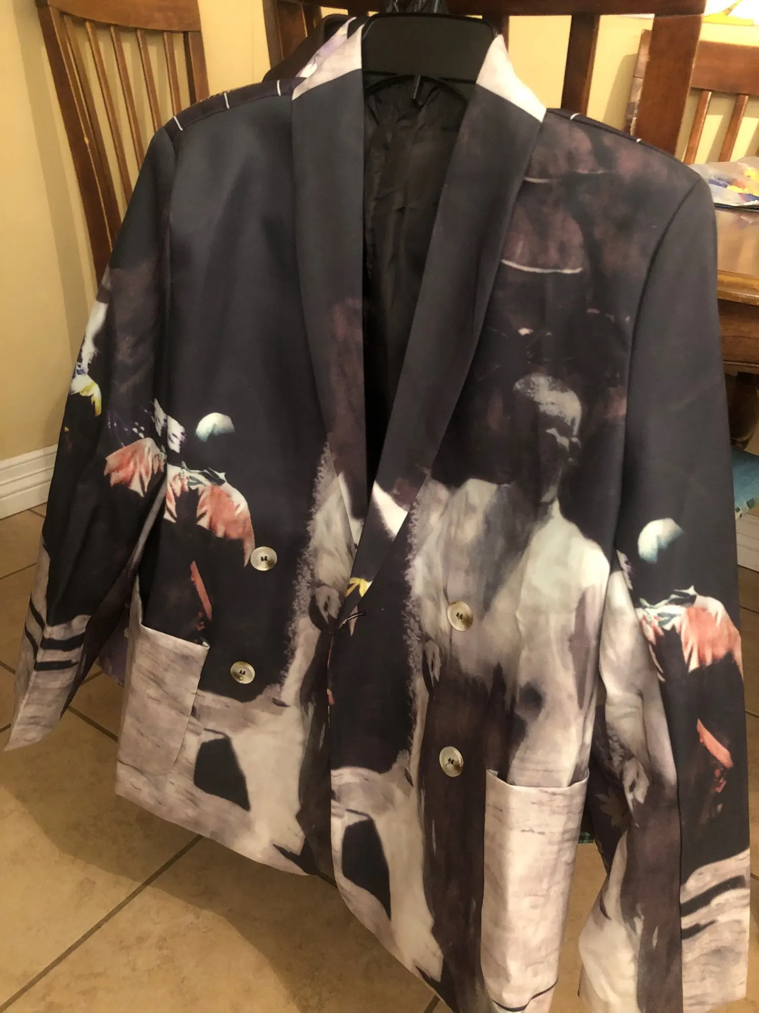 KPYTOMOA Women 2022 Fashion Tie dye Print Patchwork Blazer Coat Vintage Long Sleeve Pockets Female Outerwear Chic Veste Femme