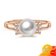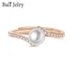 Kuololit 100% Moissanite 10K Yellow Gold Rings for Women Round Genuine White Fresh Pearl Ring for Engagement Wedding Bride Gift