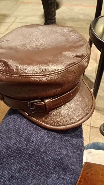 LA SPEZIA 2022 Brand Military Hat Sailor Men Brown Genuine Cow Leather Winter Baker Boy Caps Male Belt Top Quality Captain Hat