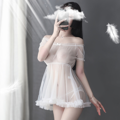 Lace Lingerie Black White Transparent Lovely Sexy Cute Princess Sleeping Nightdress Sleepwear Lolita Kawaii Chiffon Dress