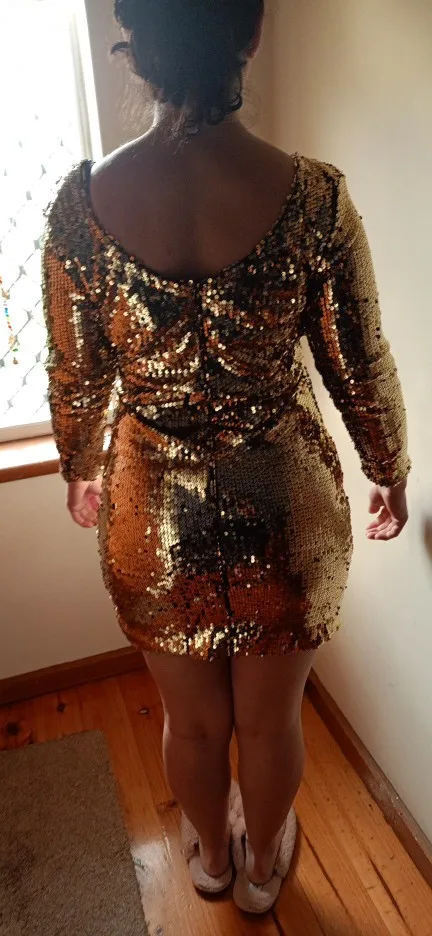 Ladies Formal Evening Party Sexy Sequin Club Short Dresses Sexy Vestidos Autumn Dresses Women Golden Sequins Bodycon Dress