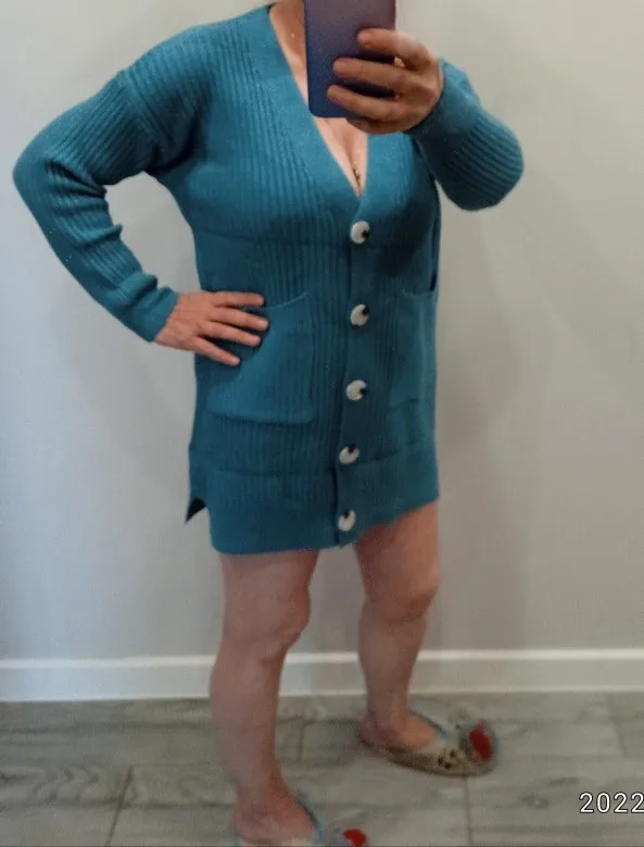 Ladies Knitted V-neck Cardigan Mid-length Casual Loose Single-breasted Coat Jacket Female Thick Outwear Women's Autumn Winter