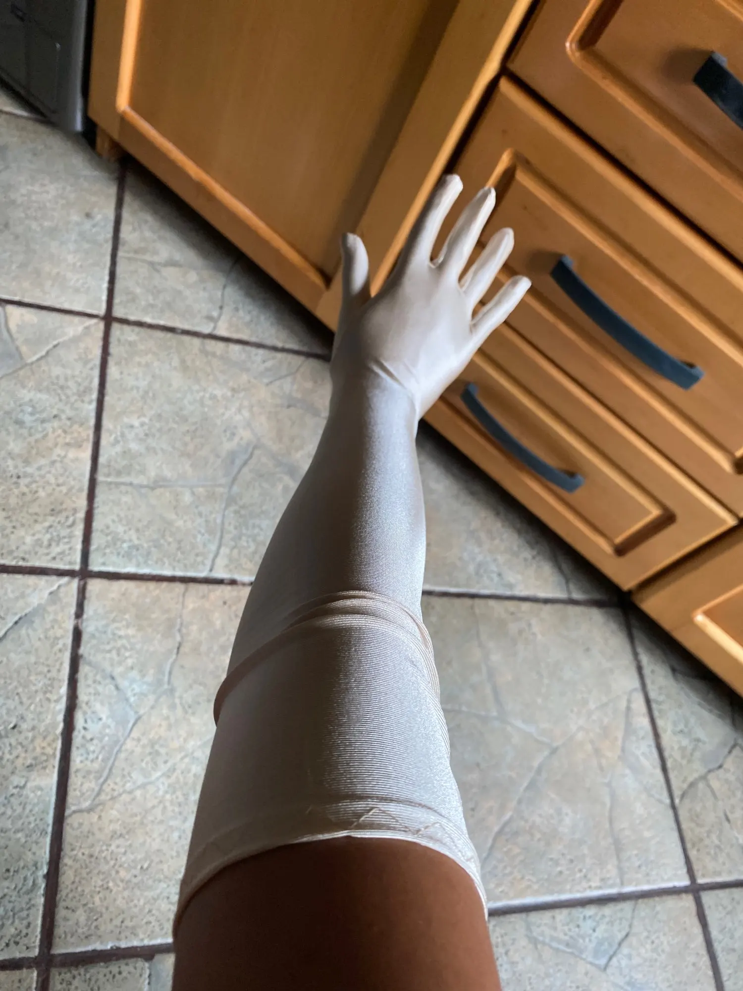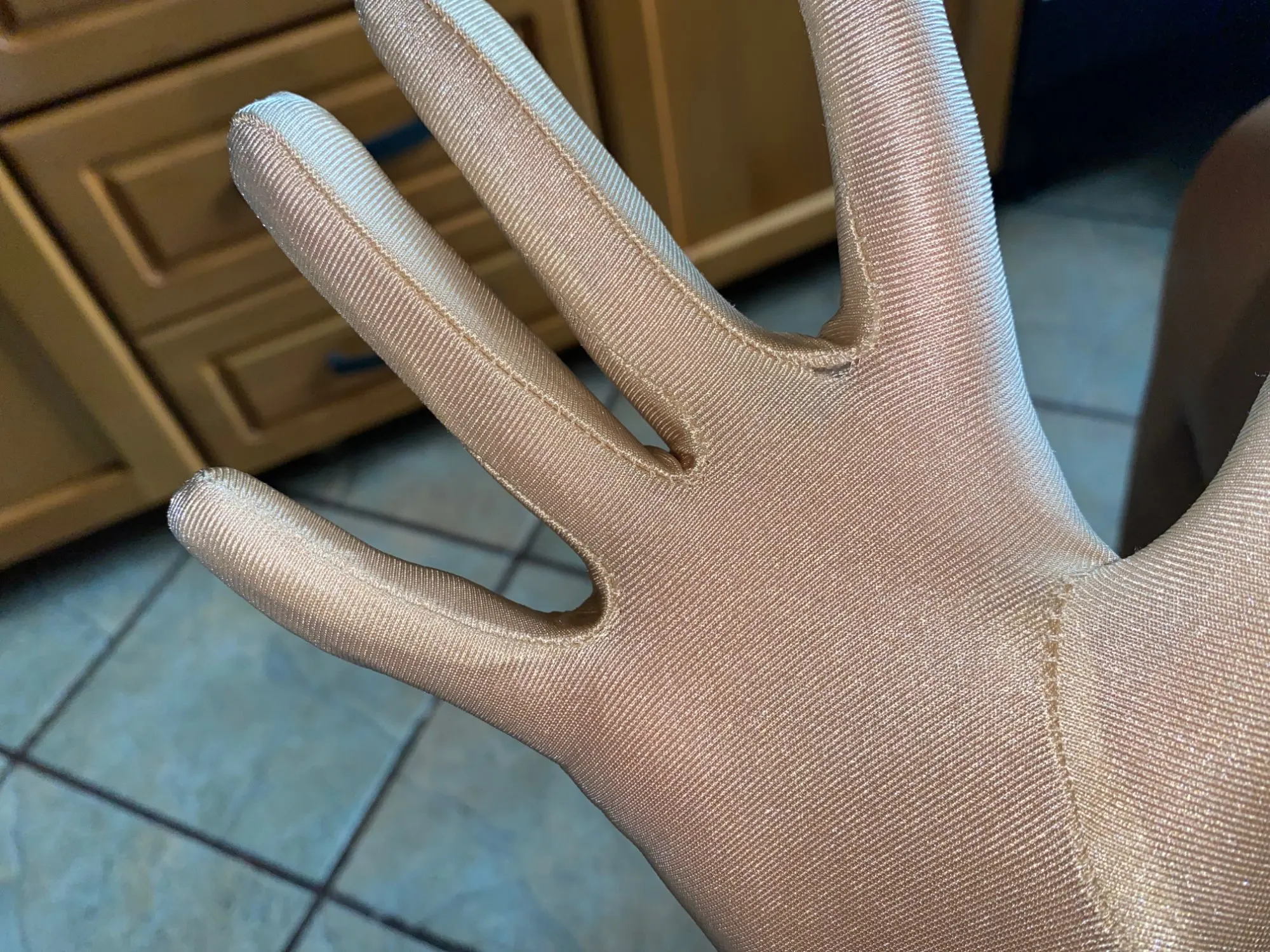 Nice material/fabric! Ok, some threads to cut, and one finger I had to sew shut, but no big problem Arrived in a little less than two weeks!