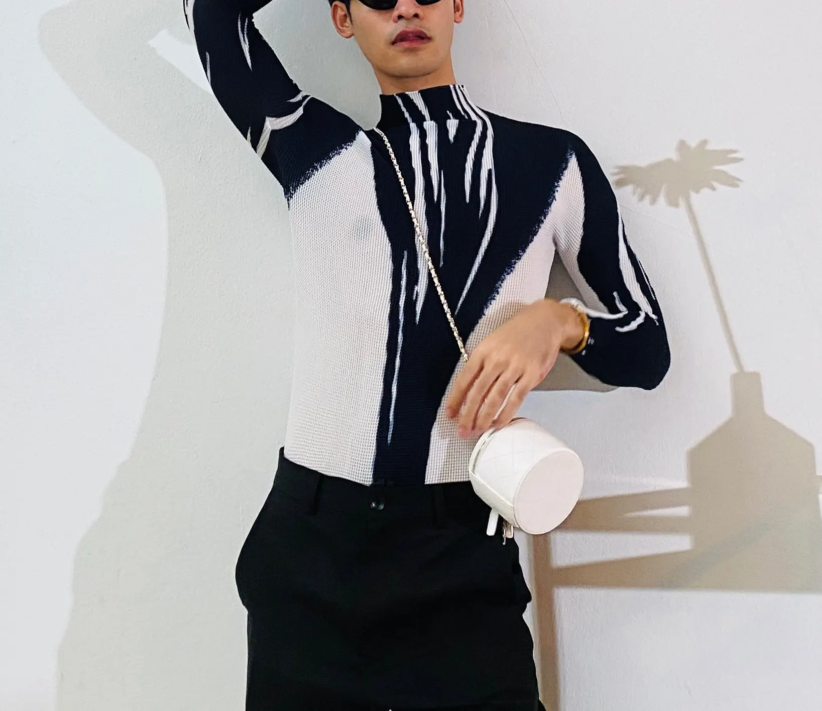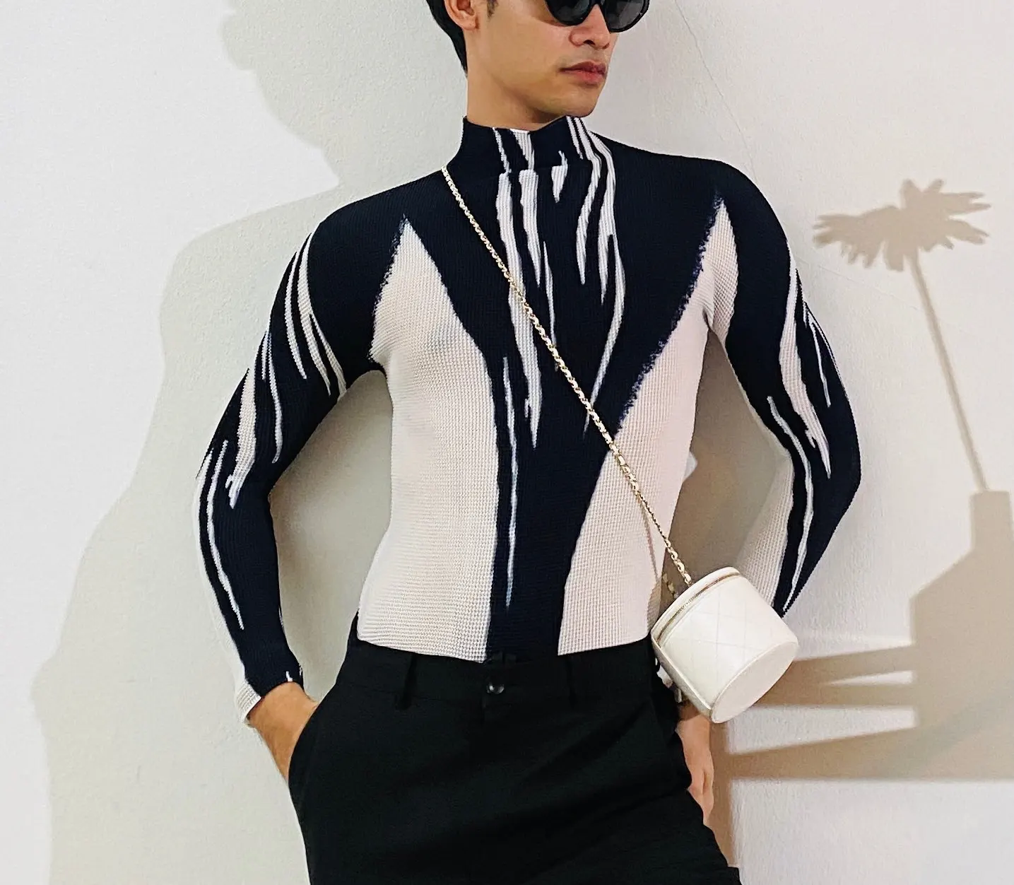 LANMREM black white print pleated lightweight long-sleeved street wear top 2022 Autumn fashion small t-shirt for women 2A1552