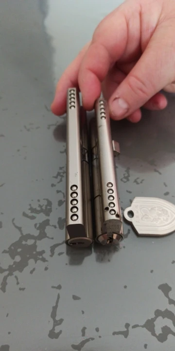 Excellent lock. Smooth working, and there is no brand/type printed on the face plate. Some drawbacks though: - when key is pulled out, the cylinder is all lined up, allowing for pulling it out (you can spot these in the pictures too btw); - front plate scratches easily, i mean very easily, in fact it was full of scratches on arrival; - the top of the keys is HUGE, wait till you hold it in your hands; - the acrylic box arrived shattered, it's really not resistant to postal service. All in all, a nice lock, not perfect, but good for the price.