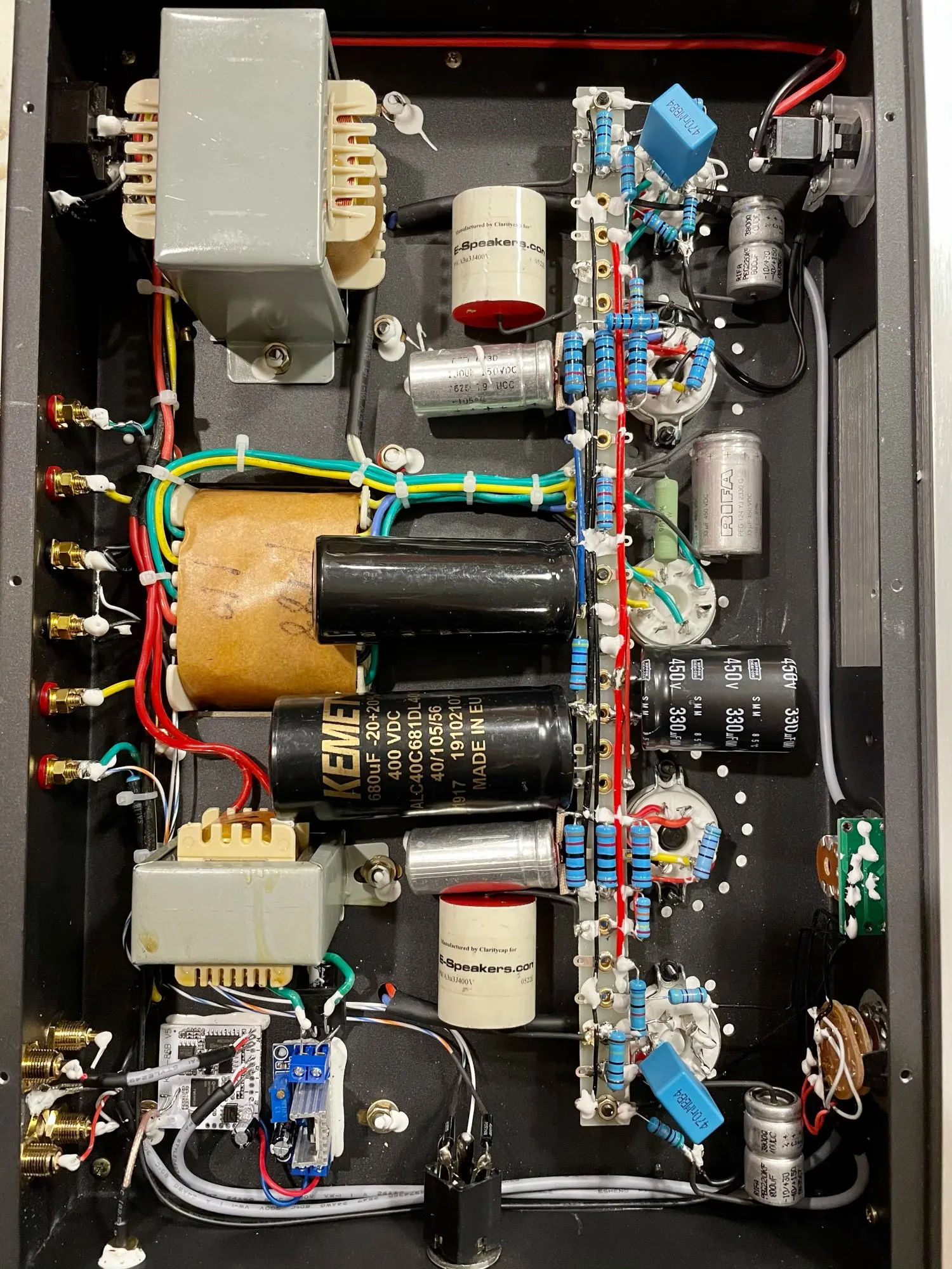 Can’t be happier with this purchase! The amp came quickly- about 5 days since shipped (FedEx IP). I am a long time DIYer so first thing is to check circuit and modify :) to be honest this amp design is already very good and sound nicely. I just enlarged the power filtering capacitors, changed coupling capacitors. KT88 runs on about 330V plate at 95mA idle current - and it is running at Ultra Linear with huge power and output transformers. The output watt per official statement can go up to 15W - I have no doubt about it, it is very powerful. The preamp stage is SRPP using 6SN7 with slight global negative feedback from output transformer 8ohm. I use RCA/Tungsol 5Z3 with adapters, feeding Tungsol 6SN7 and then drive Gold Lion KT88, and I drilled a 6.3mm phone Jack so I can plug in my earphone not bothering my family at night. Overall it is a very good design, high power single ended KT88 amplifier. It simply sounds amazing and very tube-sounding with plenty detail - highly recommend!!!