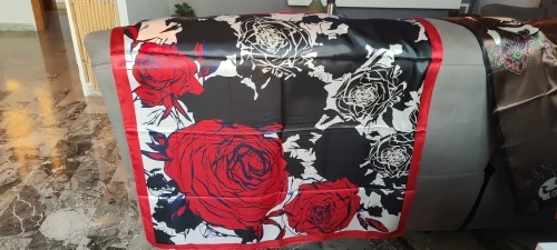 Large Hijab Scarves For Women Fashion Print Silk Satin Scarf Female 90cmx90cm Luxury Brand Square Shawls Head Scarfs For Ladies
