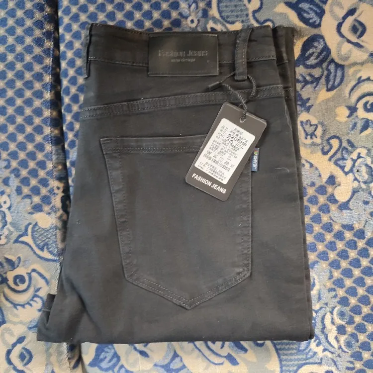 Large Size 40 42 Men's Black Jeans New Cotton Elastic Straight Trouser Male Fashion Business Denim Pants Brand Clothing