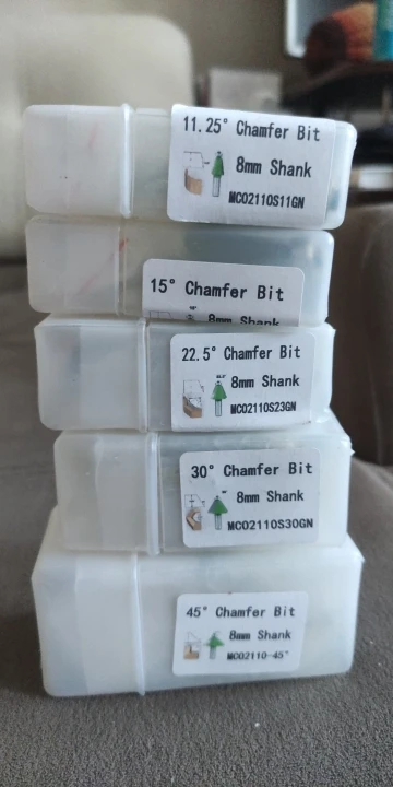 LAVIE 5pcs Set 8mm Shank Chamfer Router Bit 11.25 15 22.5 30 45 Degree Milling Cutter for Wood Woodorking Machine Tools MC02111