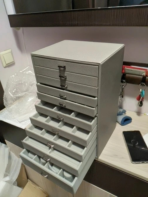 Leather Multi-Layer 10 Floors Jewelry Box Necklace Bracelet Earrings Ring Storage Box Jewelry Finishing Box Drawer Type Display