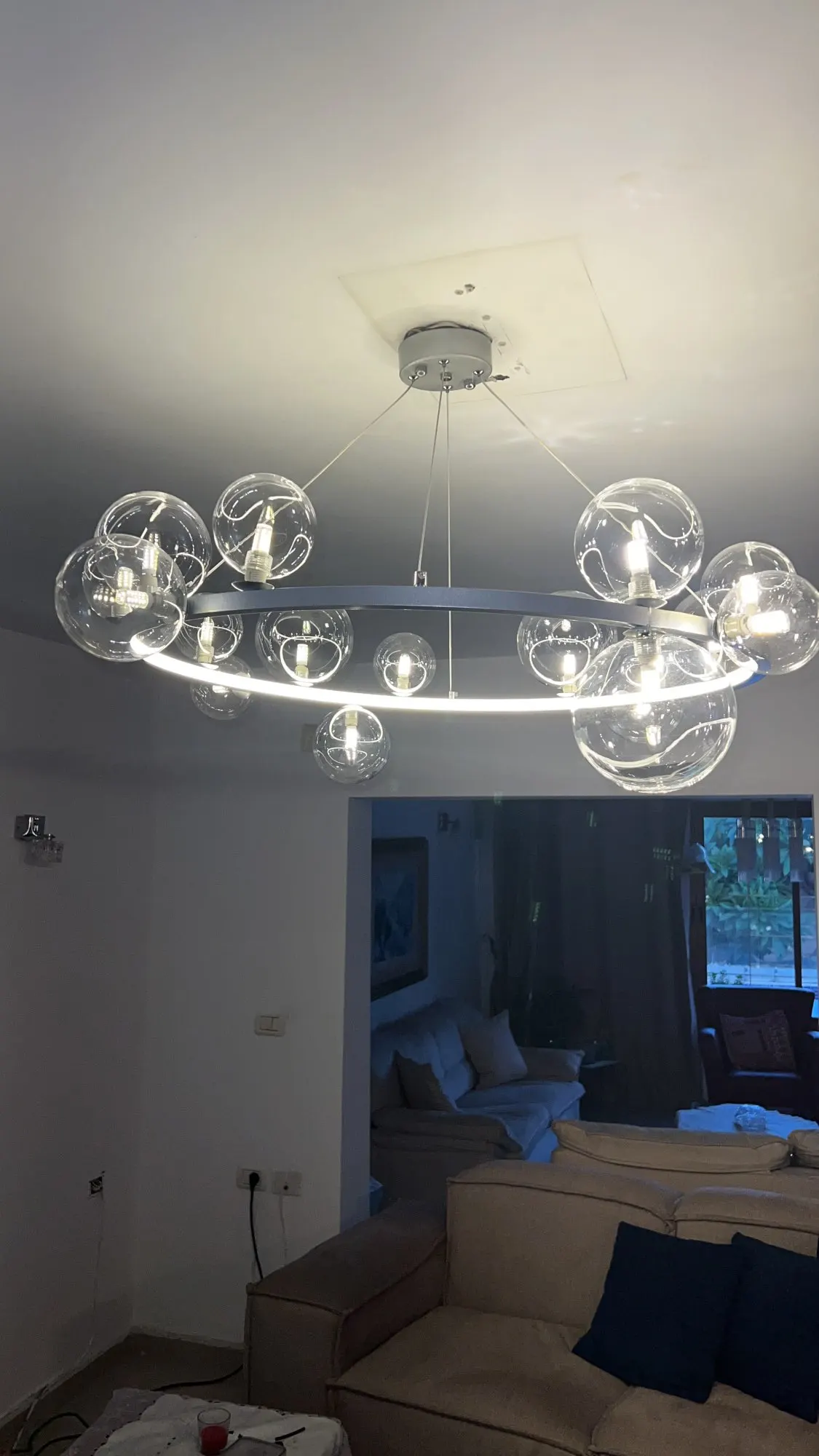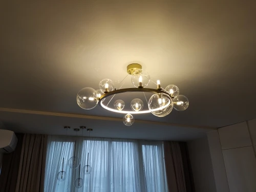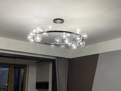 LED Art Deco Glass Bubbles Round Black Silver Chandelier Lighting Suspension Luminaire Lampen For Dinning Room