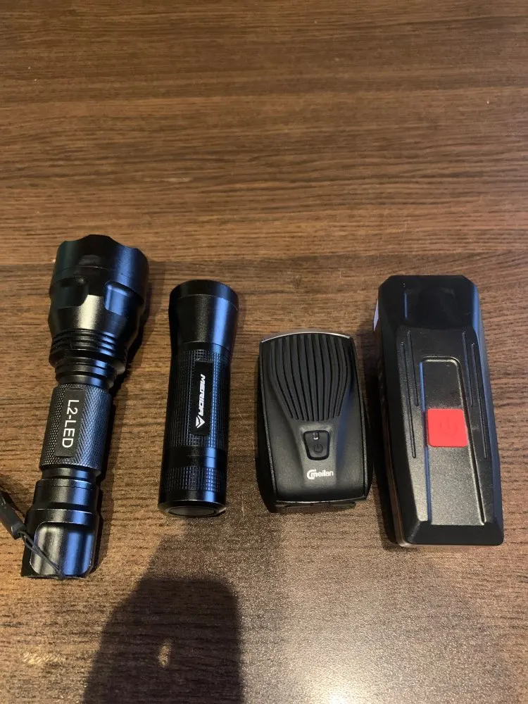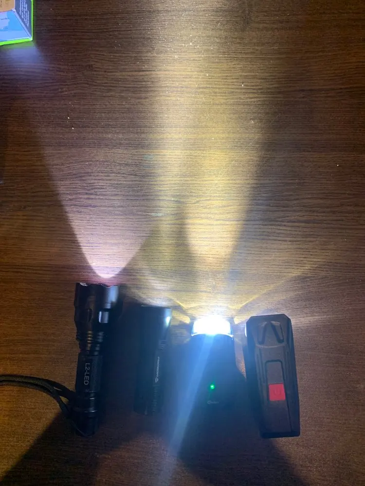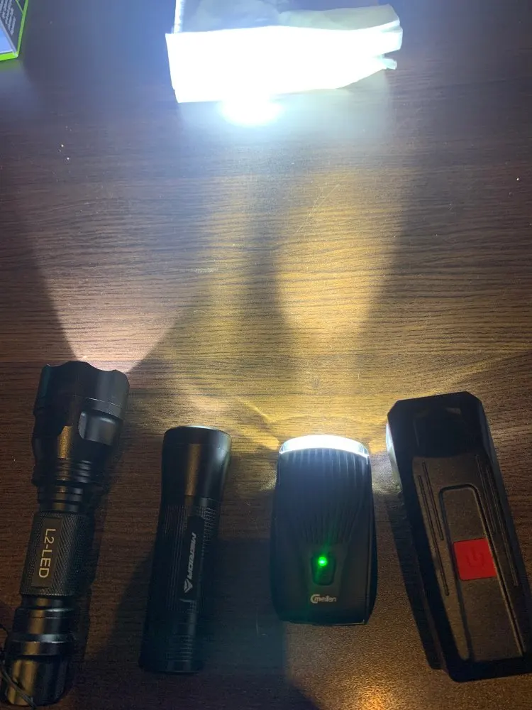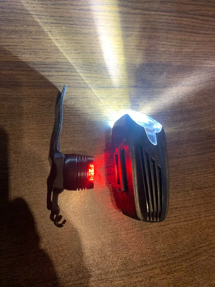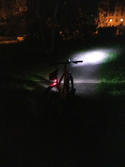 Really nice product. Light power is good and I compare it to some powerful flashlights. Button functions are not very intuitive - long press for on and same for off. First I thought it was broken because I didn’t know how to start it. Also the tail light is very nice. It uses 2 button batteries which is not very good. I totally recommend this set. I put several flashlights next to it for comparison.