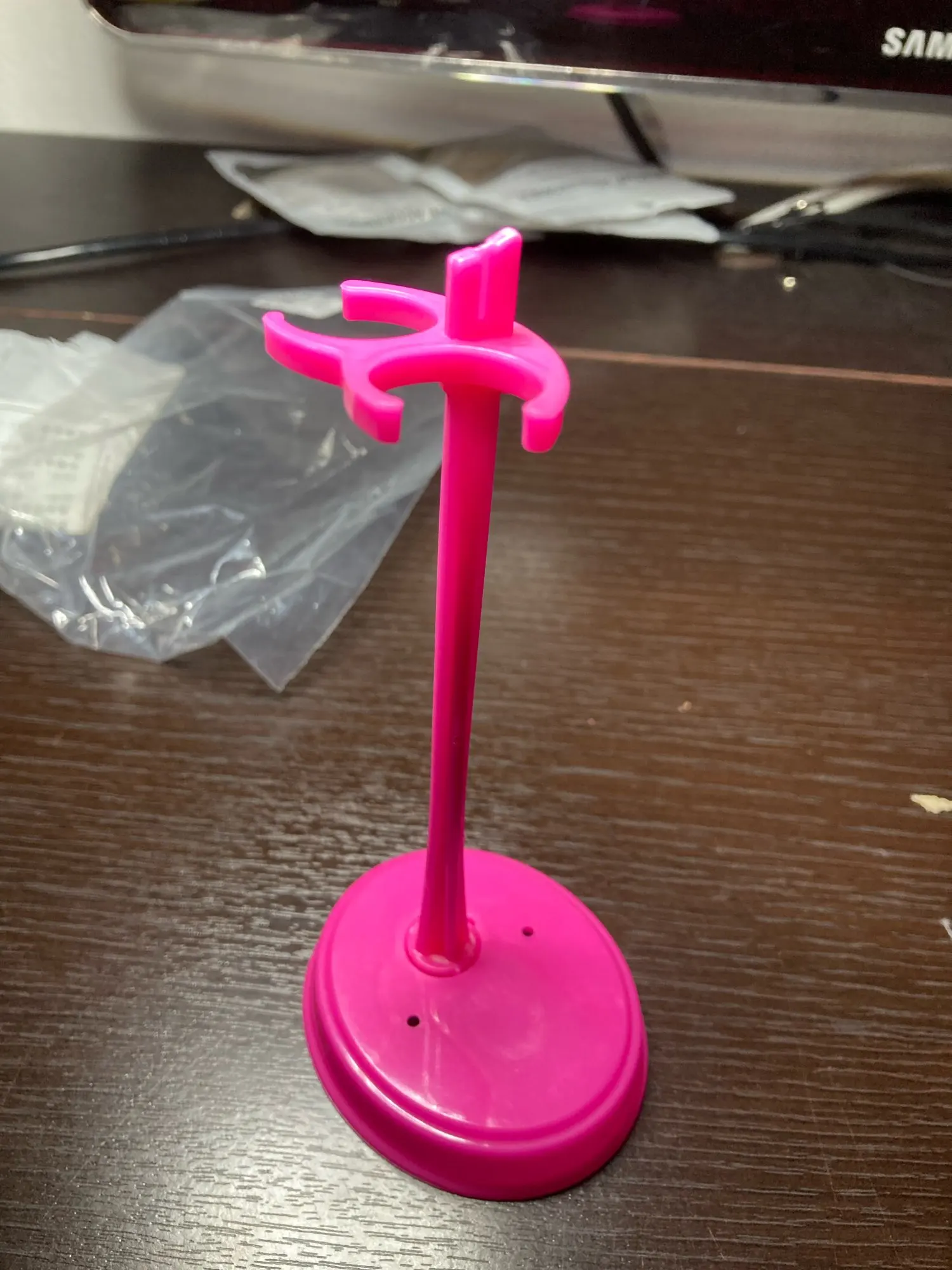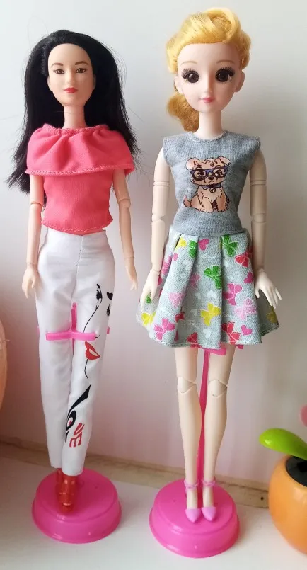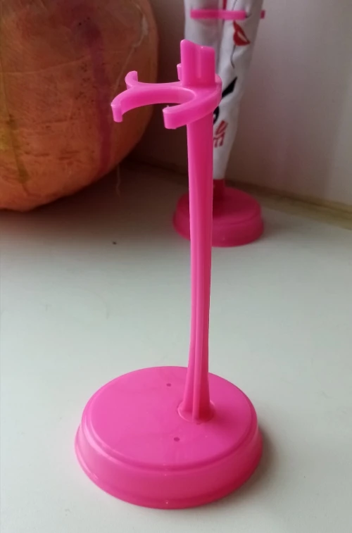 Does NOT fit authentic Barbie and does NOT fit knock off Barbie dolls that we bought from AliExpress. We have both kinds of dolls. Doll feet to not touch the base of the stand because the clips for the legs are too small. The base is too lightweight and both the stand and doll fall down.