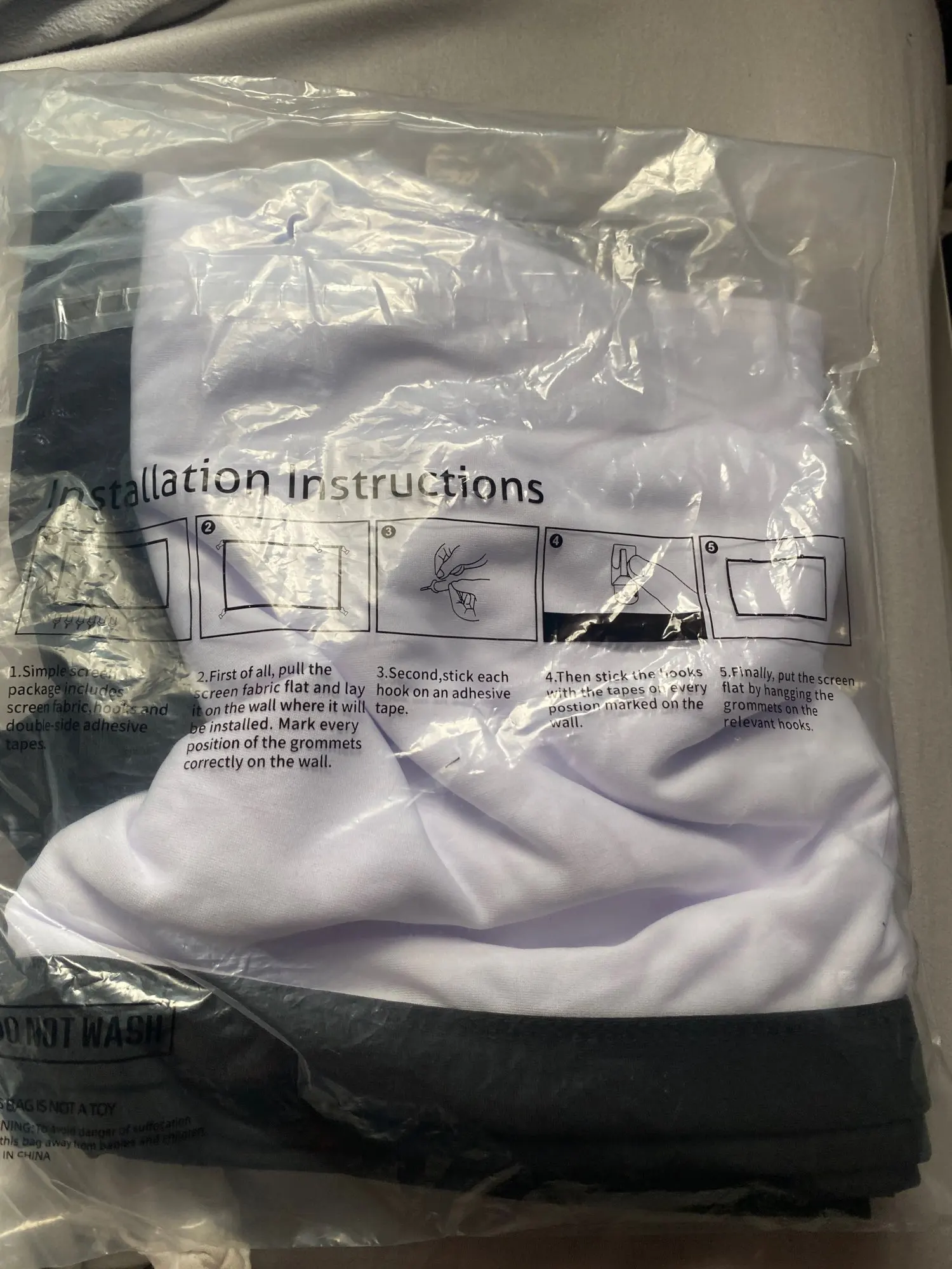 I put my grey screen behind to try and make it better. It's awful the picture is not sharp with this screen it's too thin. I've gone back to the bare wall. Waste of money