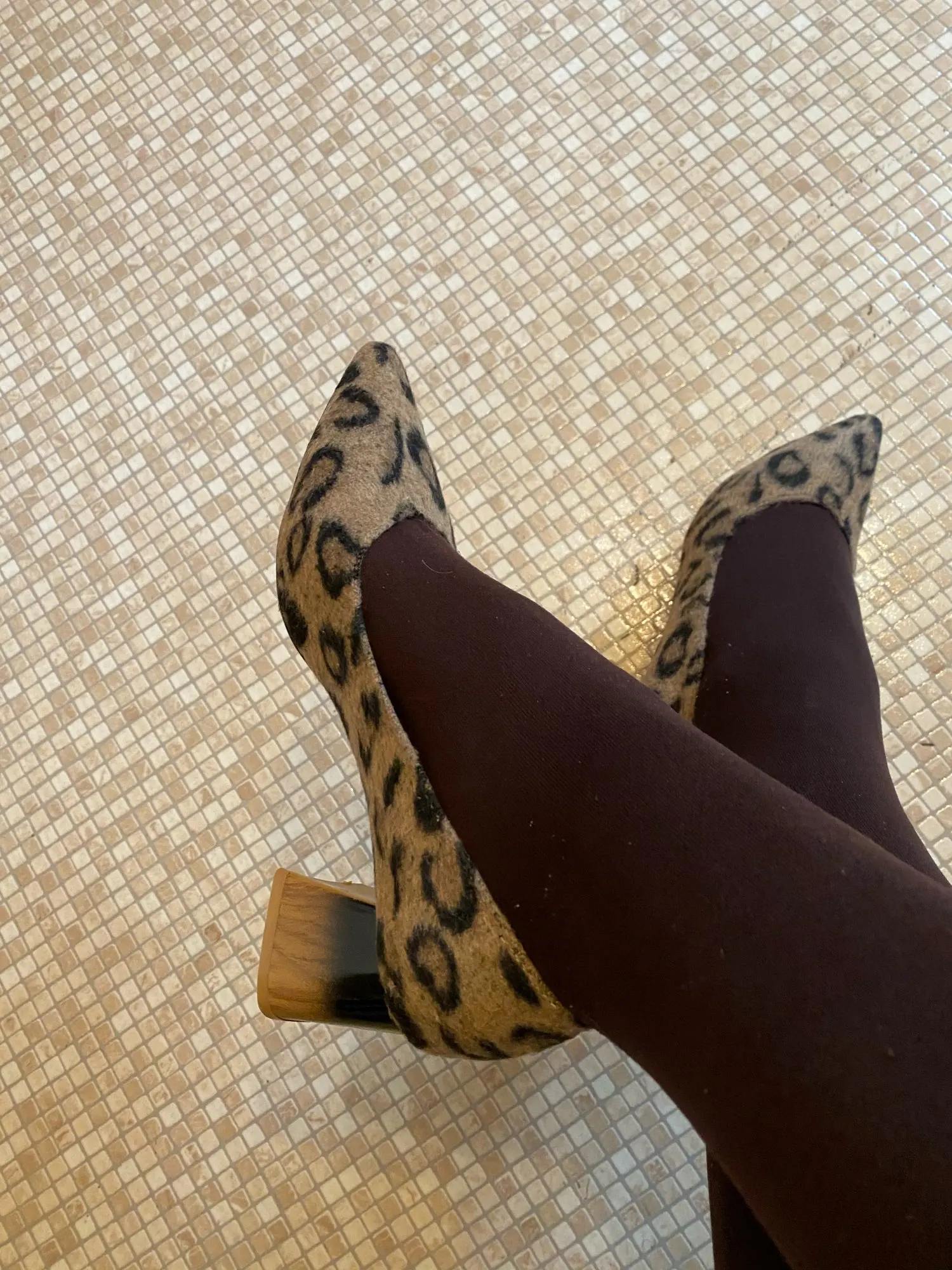 Leopard pattern thick high heels pointed toe shallow european woman shoes comfy fashion party sexy ladies pumps slip on footwear