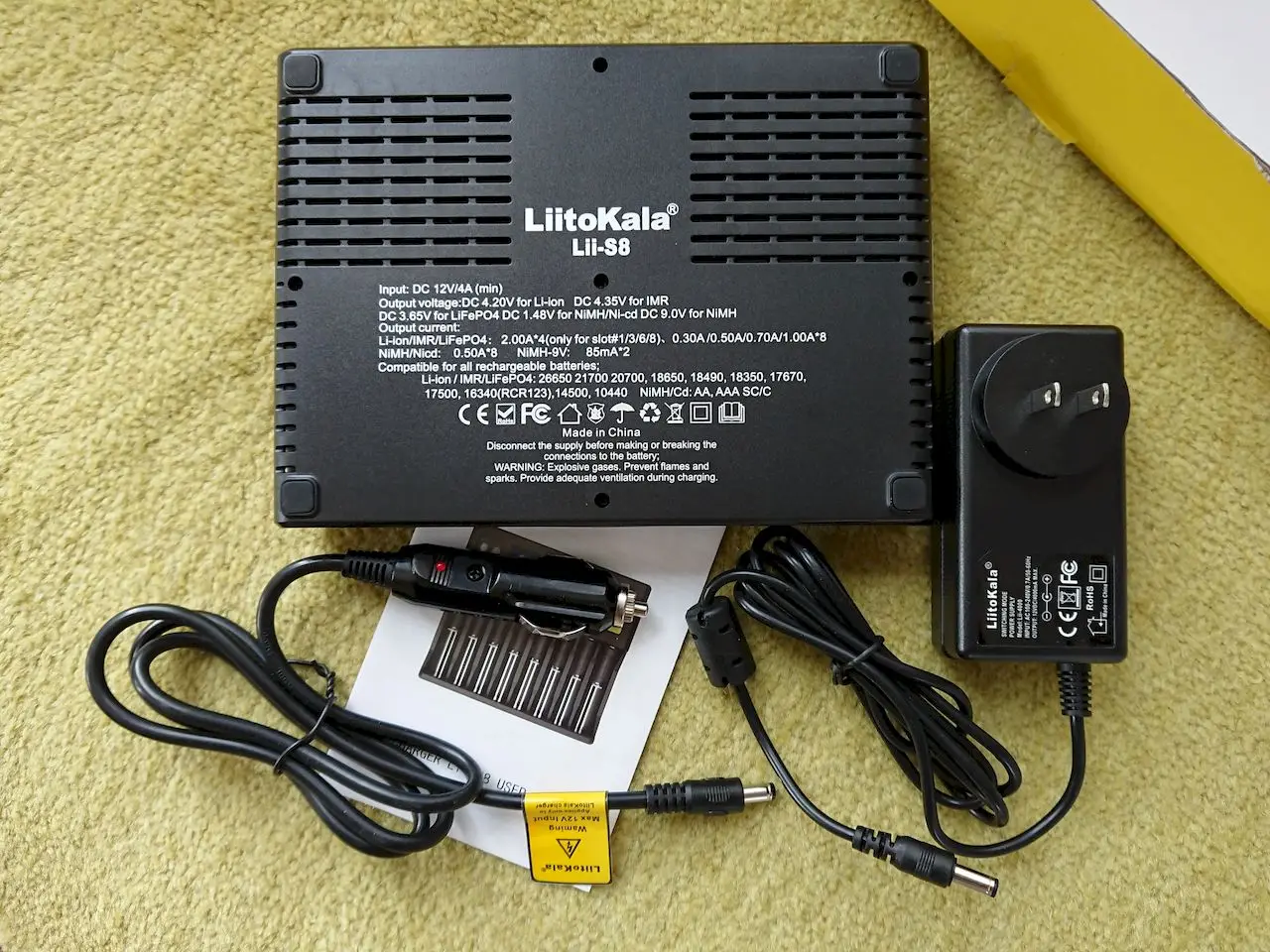 It works as expected. NiMH is limited to 500mA - not great. Li-on/LiFePo4 is fine. Buttons are hard to read from some angles. 12V 4A adapter tested with 5kV and survived - it is fairly safe.