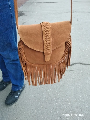 LilyHood Women Genuine Leather Fringed Crossbody Bag Boho Hippie Gypsy Folk Ibiza Music Bohemian Fringe Feminine Shoulder Bag