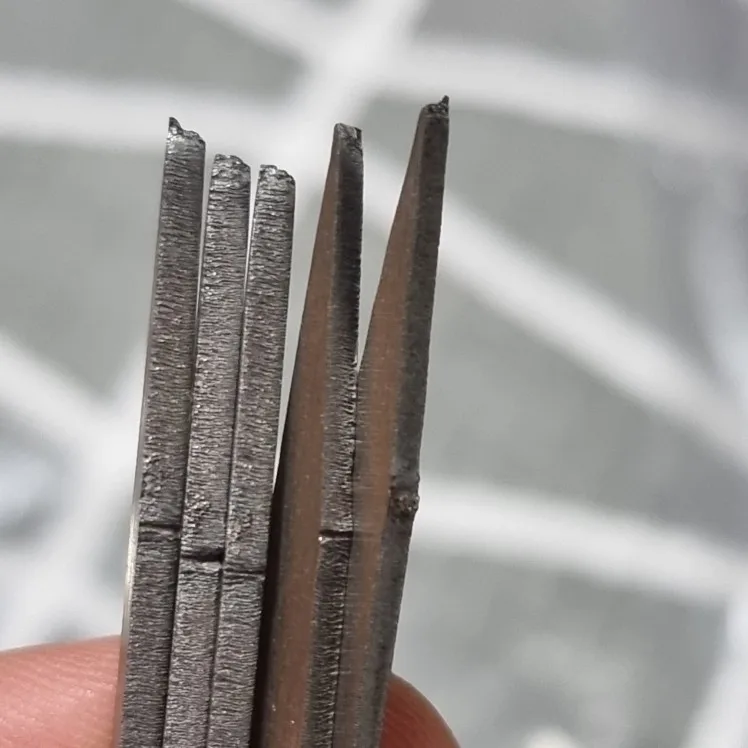 The edges and the overall quality are VERY raw. It is due to the serie cutting machine. Edges are not at all smoothened, so it is nearly sharp. It does not cut, but to explain the feeling, you instinctively avoid to put it in your mouth for example, to picture it.. Also, as the titanium is very raw on the surface, meat will stick to it. It is not polished at all, try to imagine a bit raw bamboo sticks, but made of metal. Also, tips are very sharp, it will make holes in any backpack, so I will have to smoothened them as well. I mean, no need to have such sharp tips, we just place meat or veggies on it (sharpness also due to cutting machine and total lack of finition. In conclusion: useless gain of weight, go for inox steel instead. You will have to carry maybe 3g per stick, but you will gain also smoothness, strength (don't blow on these titanium stick or they bend.) durability and pleasure of use. This doesn't have to do with the seller, who is great
