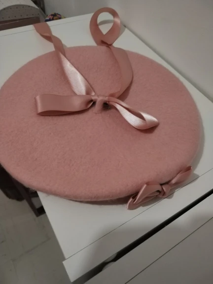 Lolita Girls Cute Bowkont Beanie Women Casual Beret Hat Painter Hat Unisex Artist Cap Dome Pink solid color decorate Wholesale