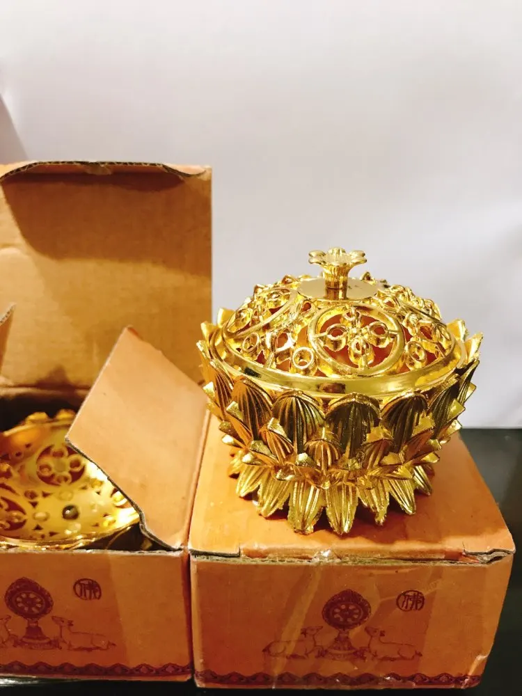 Lotus Shape Zinc-copper Alloy Incense Burner Brass Mini Sandalwood Censer Creative Home Office Decor Incense Holder