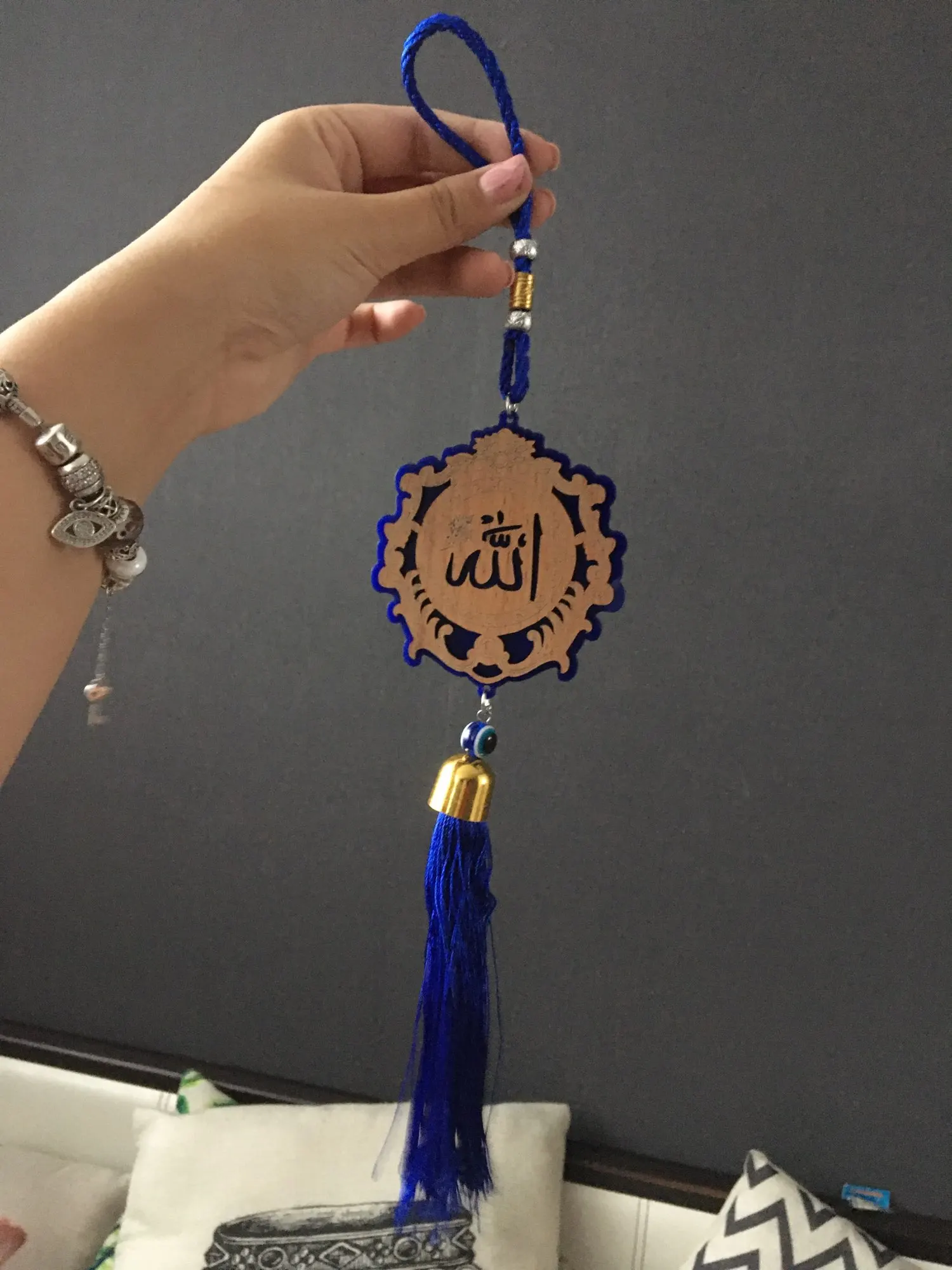 Lucky Eye Wood Keychain Evil Eye Engraving Muslim Islam Tassel Wall Hanging Car Key Chain Jewelry EY6238