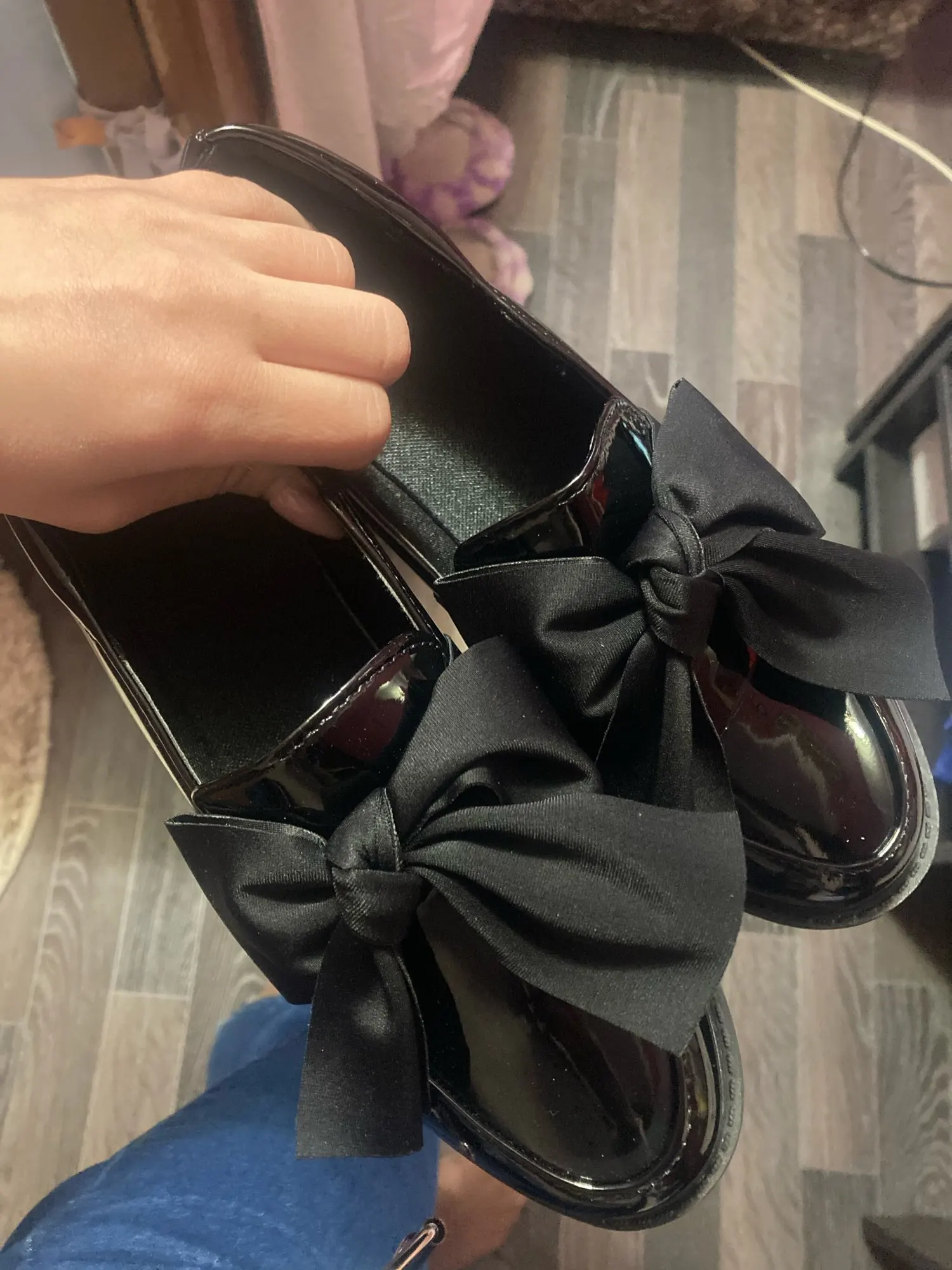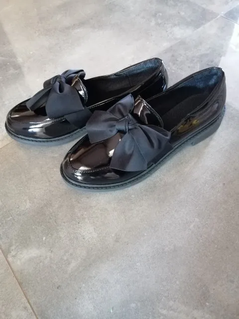 patent leather shoes women/bow shoes women/slip on shoes for women