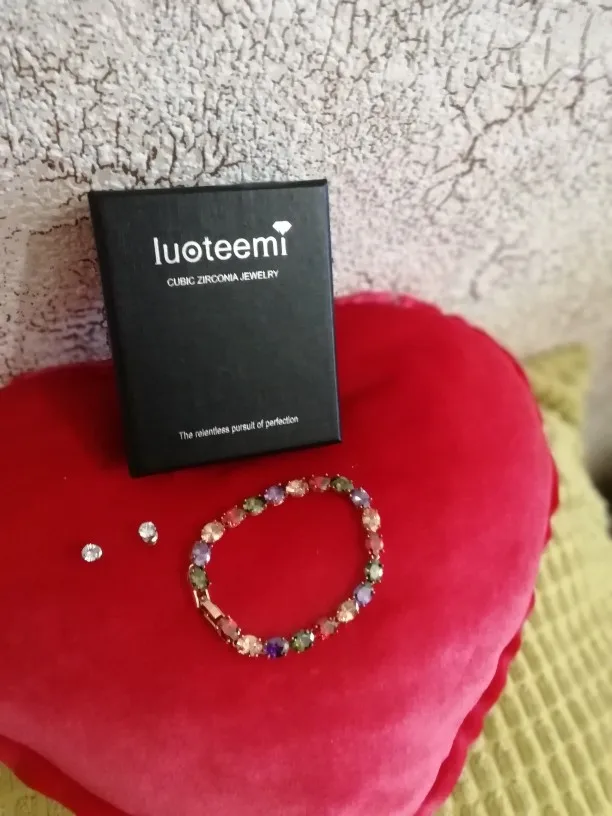 LUOTEEMI High Quality Youth Venus-Colorful Oval Shape AAA Cubic Zirconia Charm Bangle Bracelet for Women Wedding Party Jewelry