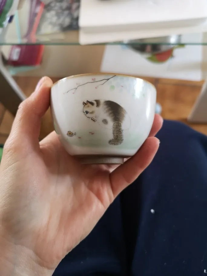 LUWU ceramic teacup cute cat chinese tea cup drinkware