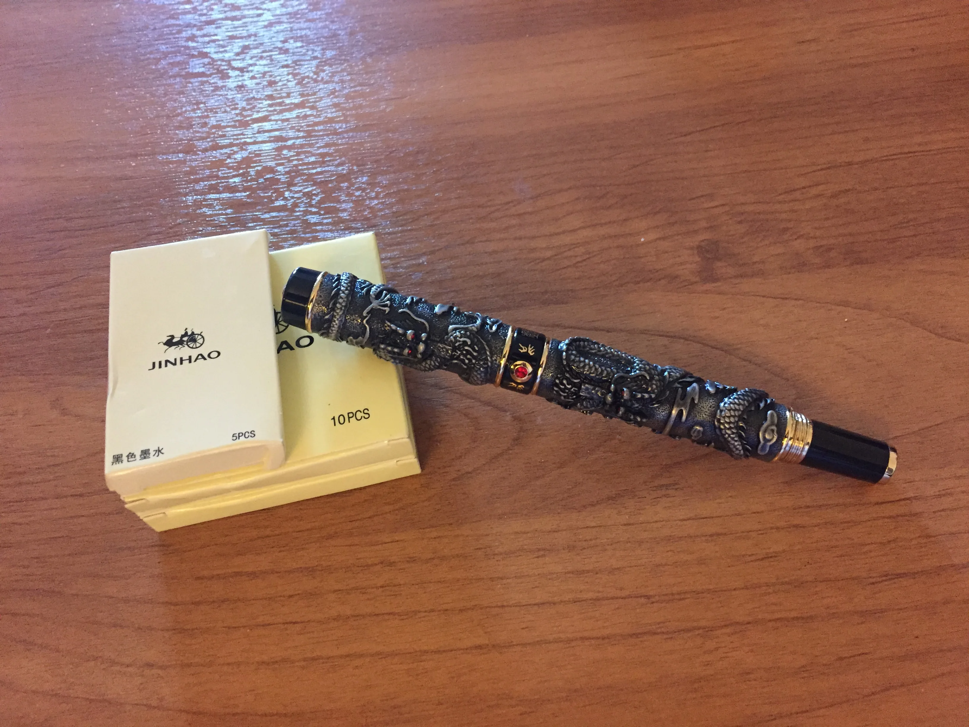 luxury brand quality JINHAO DRAGON FOUNTAIN PEN BROAD Relief Sculpture PLAY THE PEARL Stationery school supplies ink pens