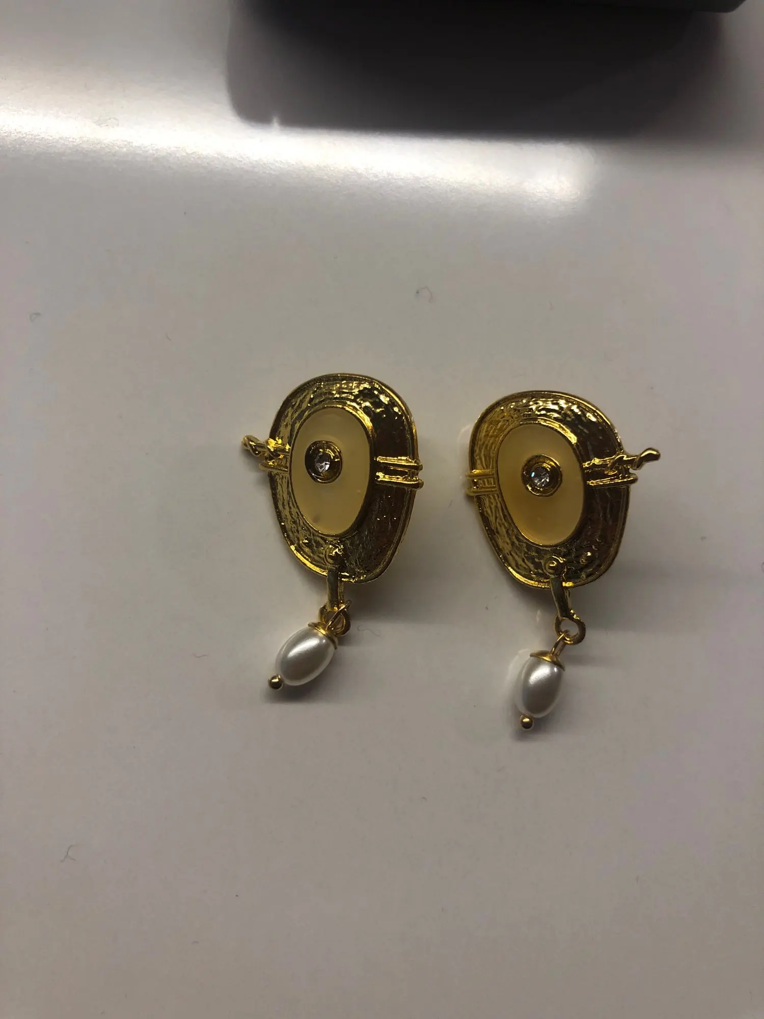 Luxury White Pearl Pendant Earrings for Bride Wedding Jewelry Charm Gold Color Enamel Statement Drop Earrings Brincos Mujer