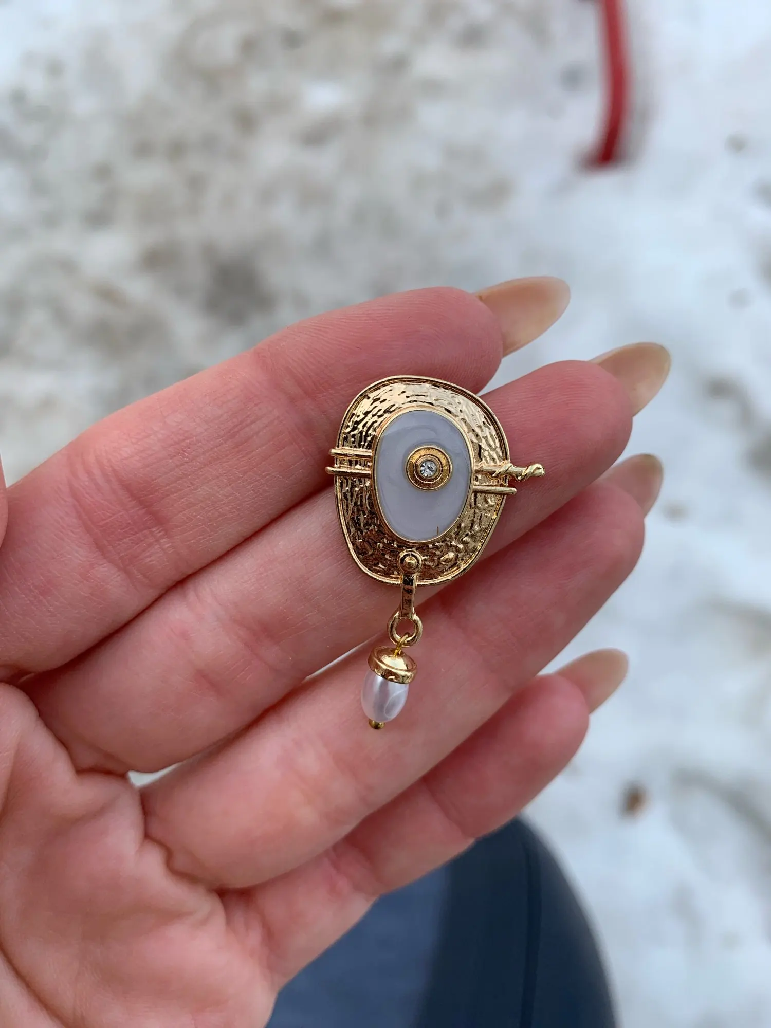 Golden Metal Pearl Earrings