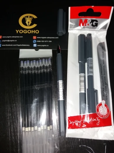 M&G 10pcs/lot 0.38mm/0.5mm Ultra Fine Black Technology Gel Pen Black Ink Refill Gel Pen School Office Supplies Pens