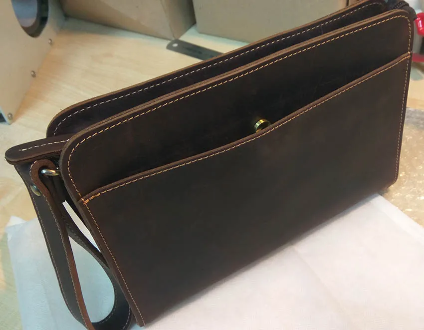 MAHEU 100% Genuine Leather Clutch Bag With Wrist Band Ipad Iphone Clutches For Male Men Hand Bag Real Cowskin Clutch Purse Gift