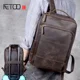 MAHEU Vintage Backpack Genuine Leather Men's travel bagapck 16 inch laptop bagpack travel bag with belt on luggage school bag