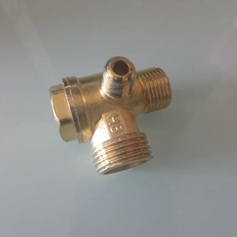 Male Thread 3 Way Metal Air Compressor Check Valve Gold Tone