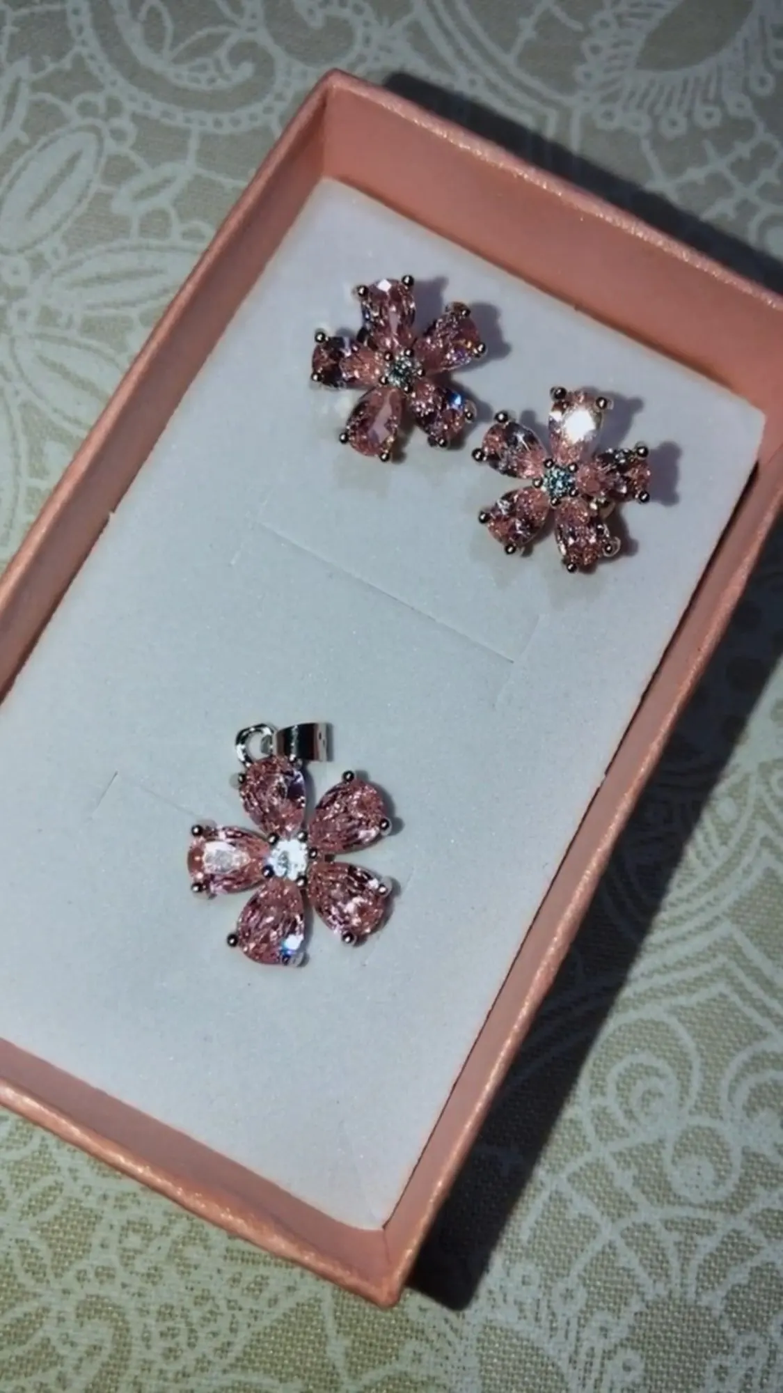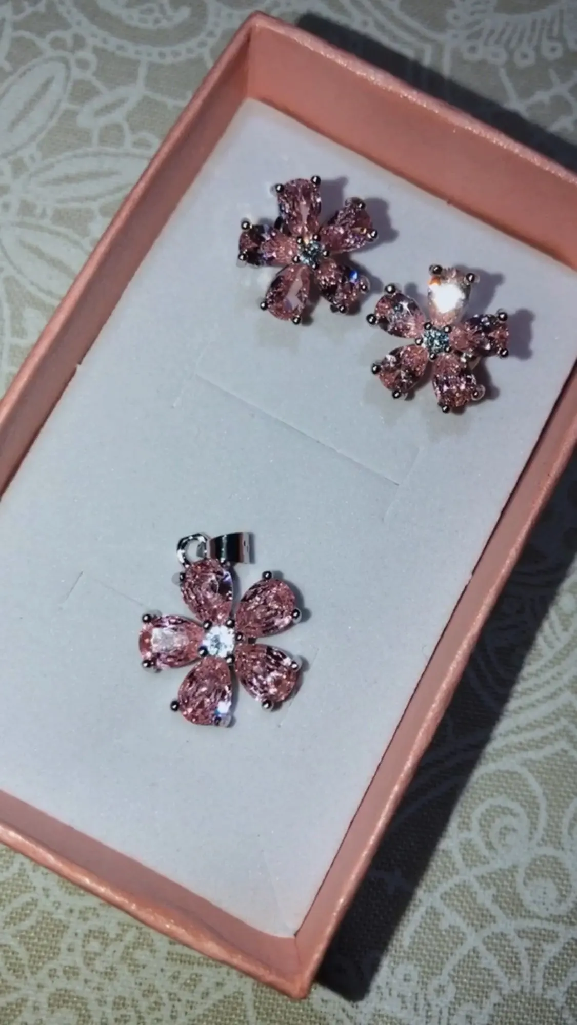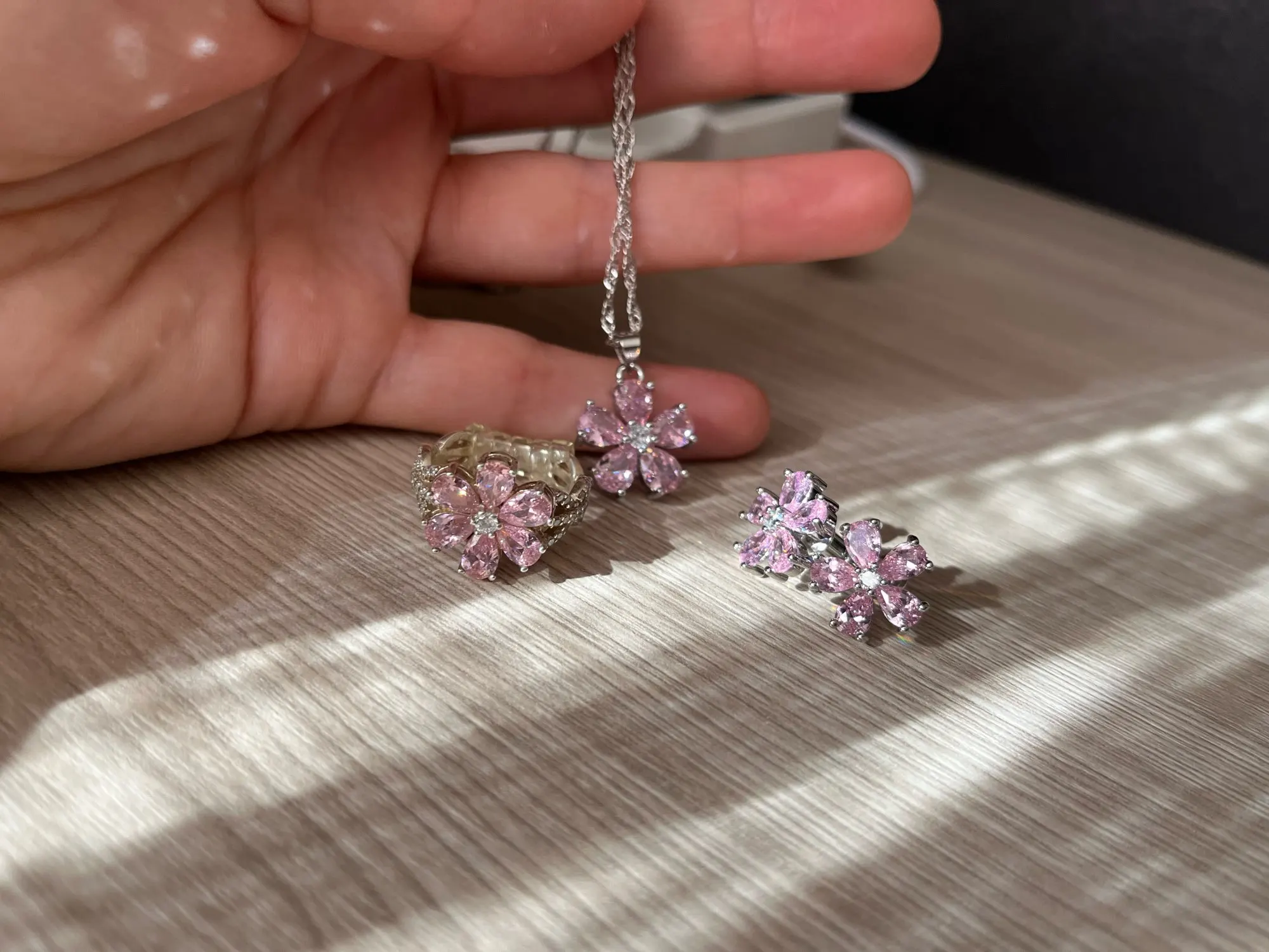 Many Colors Flower Princess Pink 925 Sterling Silver Jewelry Set For Women Stud Earrings Necklace Pendant Costume Jewelry Set