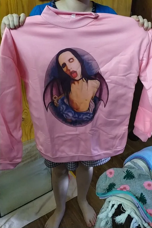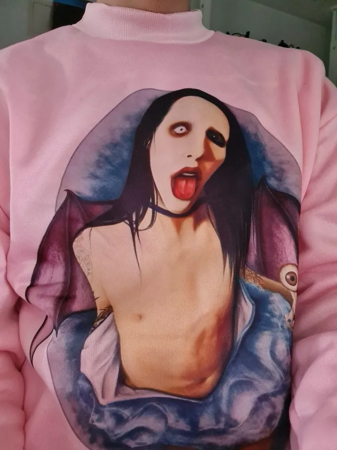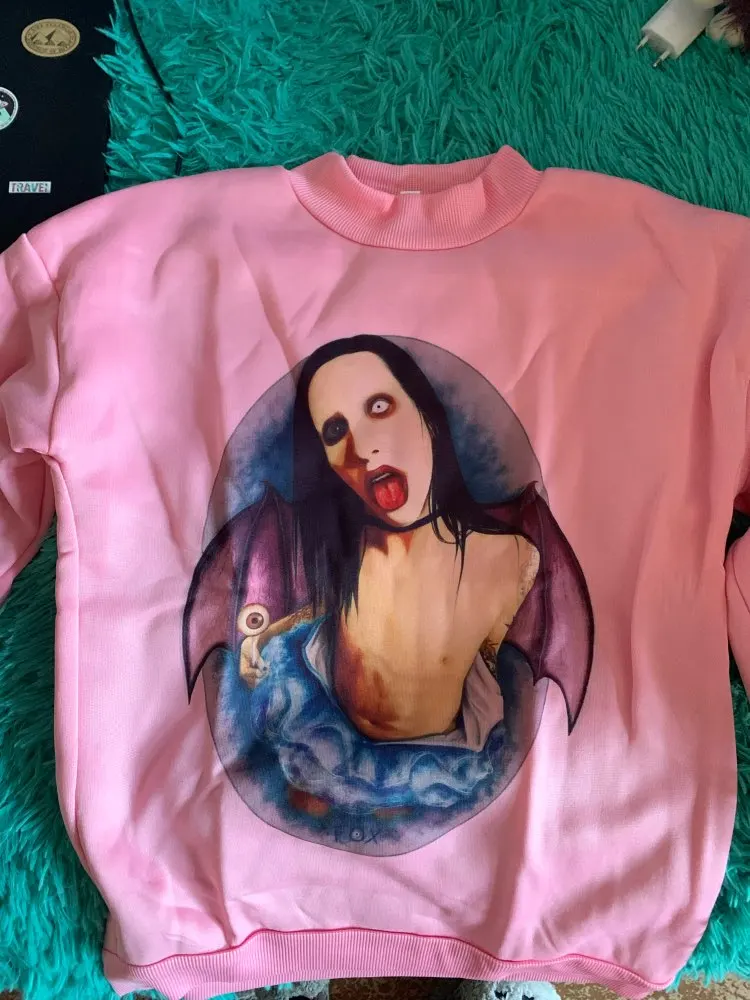 marilyn manson hoodies women female harajuku fashion ulzzang sweat shirt korean style japanese pink fleece pink
