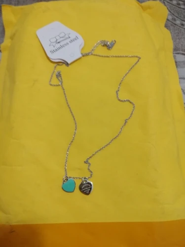 Martick Romantic Europe Style Heart Pendant Necklace Green Pink Color Double Heart Link Chain Necklace For Woman Jewelry P2