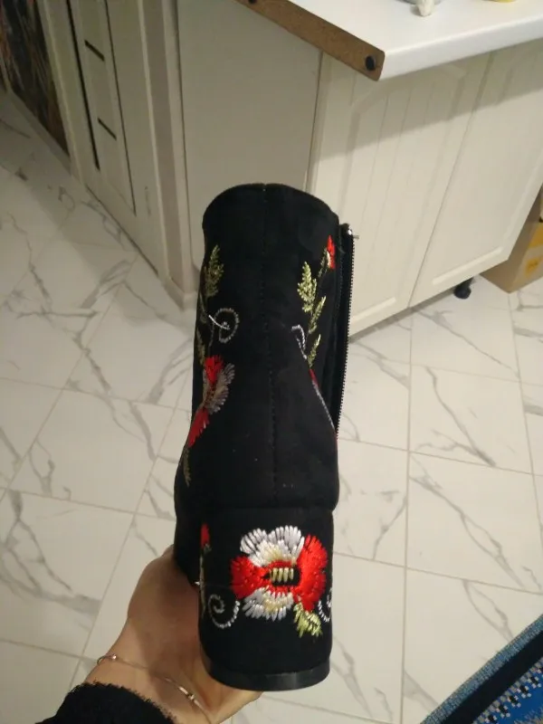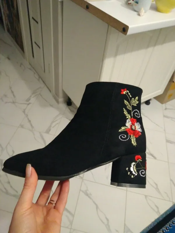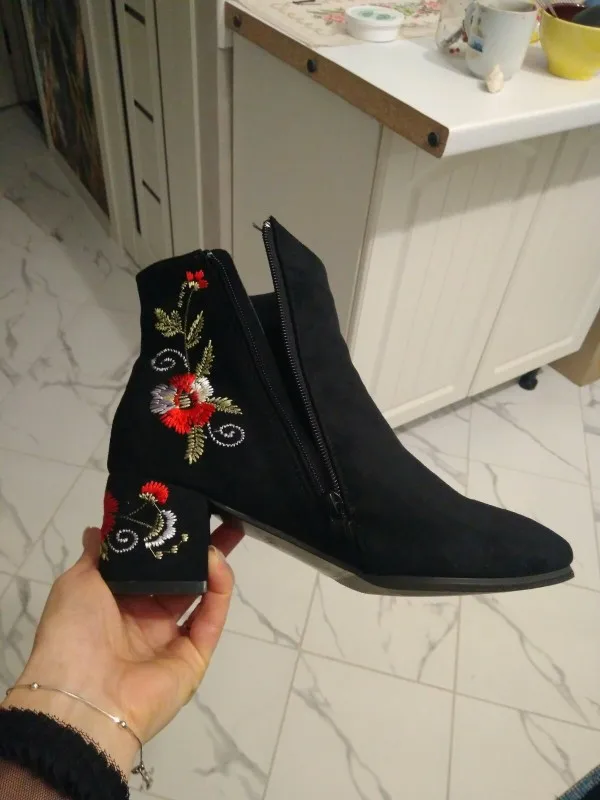 MCCKLE Ankle Boots For Women Winter Warm Plush Fashion Embroider Short Boots Ladies High Heels Round Toe Casual Shoes Zip Mujer