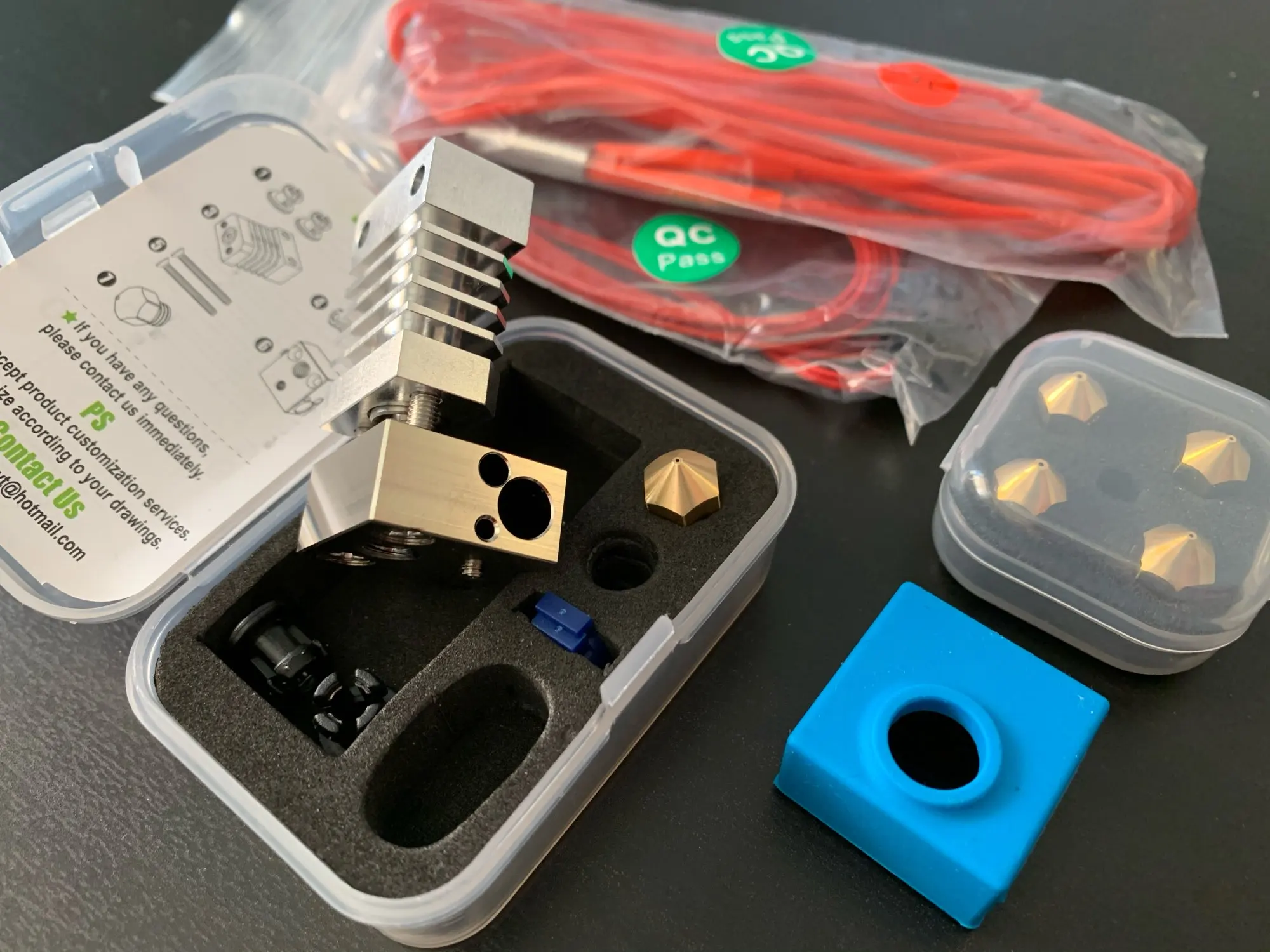 This is just fantastic looking quality. The machining on the heat block is spectacular. Everything fits together well. The heater and thermocouple came with convenient connectors so that you can change them without fishing new wires all the way through to the motherboard. Now I just need to get myself some nylon or polycarbonate filament to make this worthwhile.