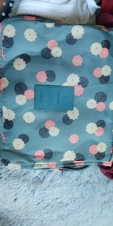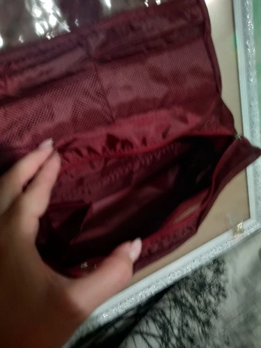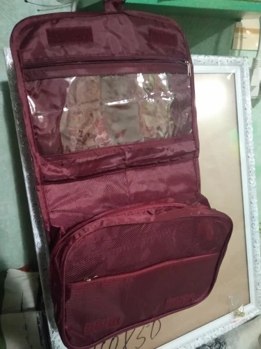 Colour on the pic is definately more powerful, the material is thin it will be good for light cosmetics but for this price its ok :)
