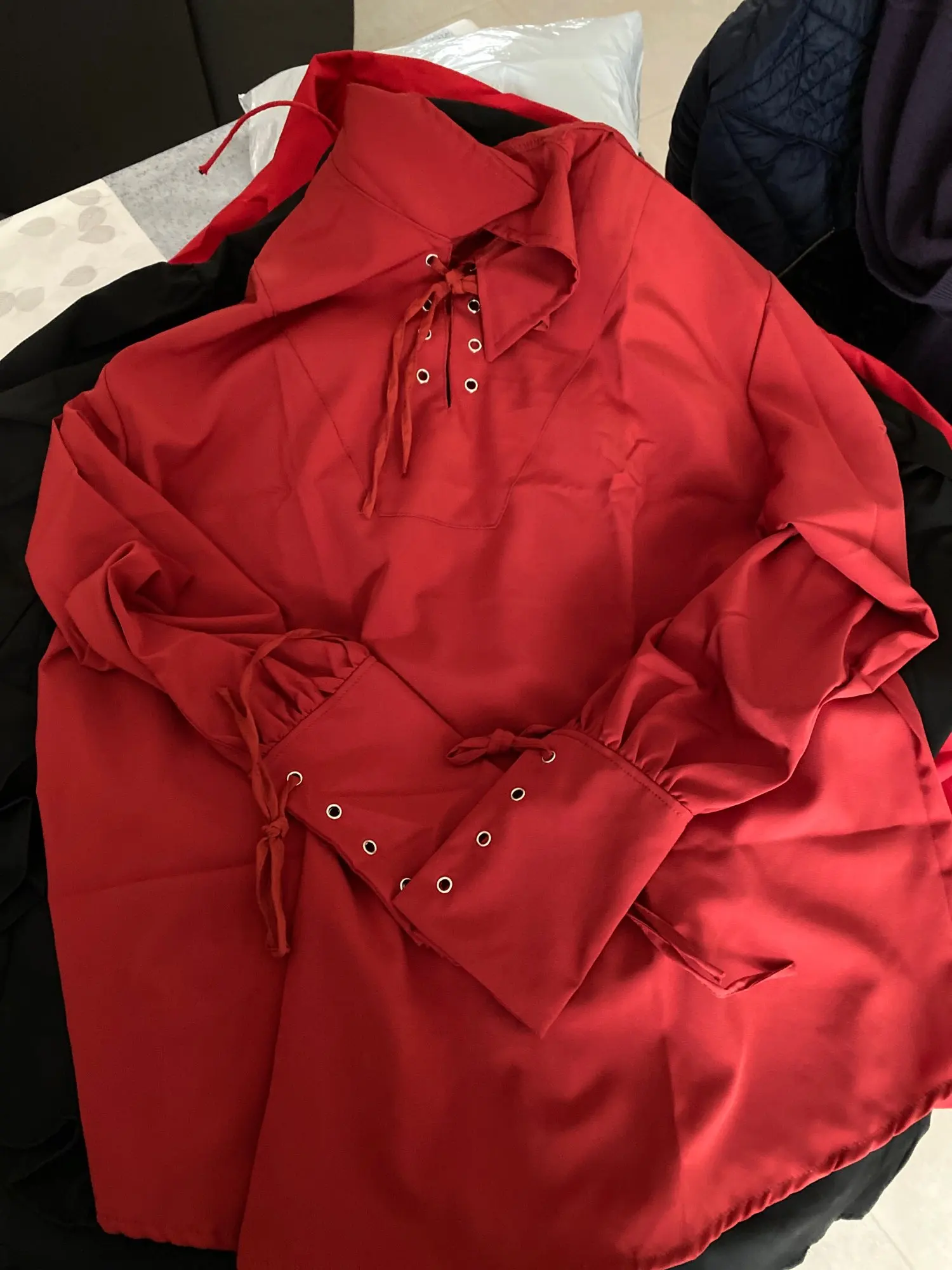Men Medieval Renaissance Grooms Pirate Reenactment Larp Costume Lacing Up Shirt Bandage Top Middle Age Clothing For Adult 3XL