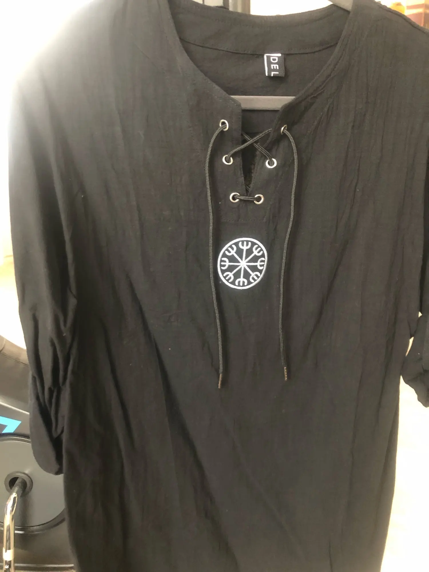 Men Plus Size Shirt Top Ancient Viking Embroidery Lace Up V Neck Long Sleeve Shirt Top For 2022 New Year Men's Clothing