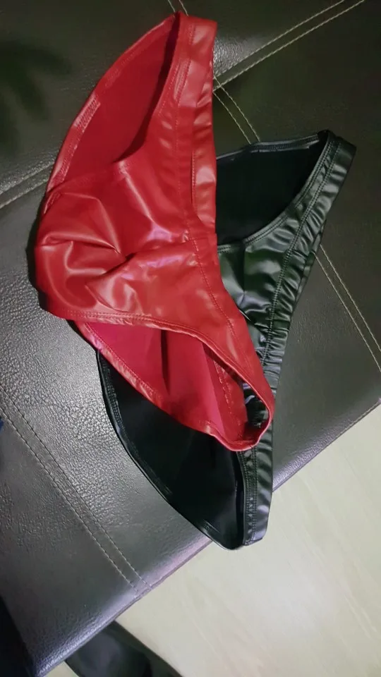Men PU Faux Leather Underwear Colloid Imitation Latex Bikini Briefs Glossy U Convex Pouch Package Buttocks Erotic Body Lingerie