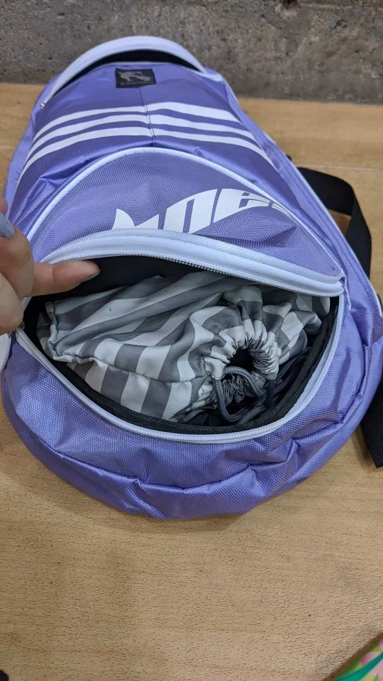 Quite happy with the fast delivery. Bought this for my 6 year old son to carry his badminton racket, shuttles, shoes, change of clothes and water bottle. I think it will fit everything. The only thing is the height is a bit too short for the length of the racket (very snug). Otherwise a nice sturdy bag. Thank you!