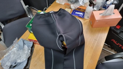 The area around the waist is made three-dimensional and fits the body. The sewing is also solid and no fraying is found. With this, I can safely put my son on a kayak in cold weather.