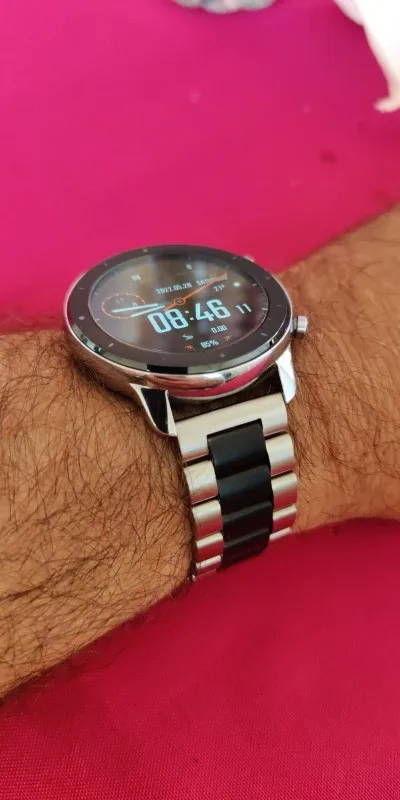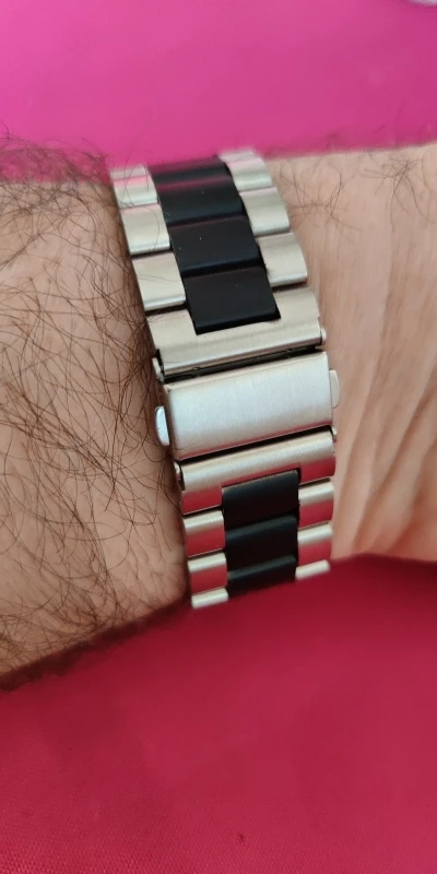 It's different from the image. I bought it as a band that matches Amazfit gtr. In fact, the color of the stainless and the band does not match. Unfortunate.