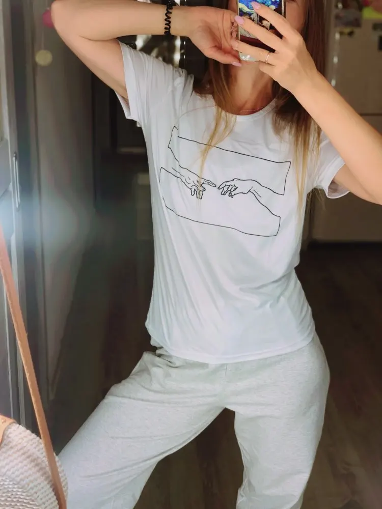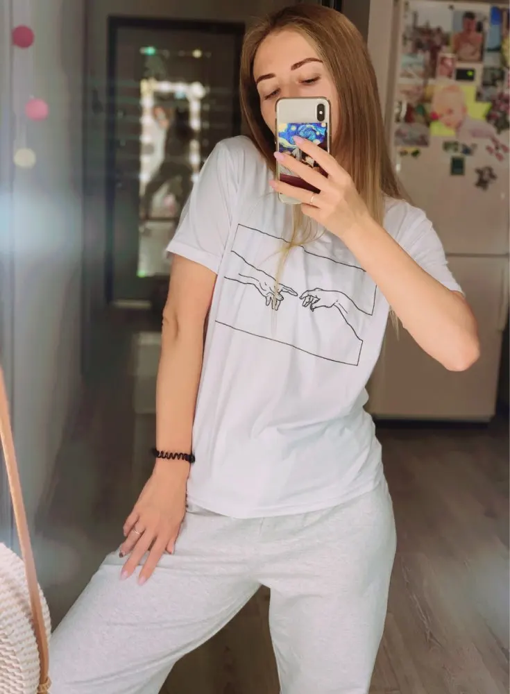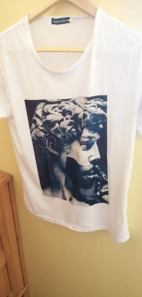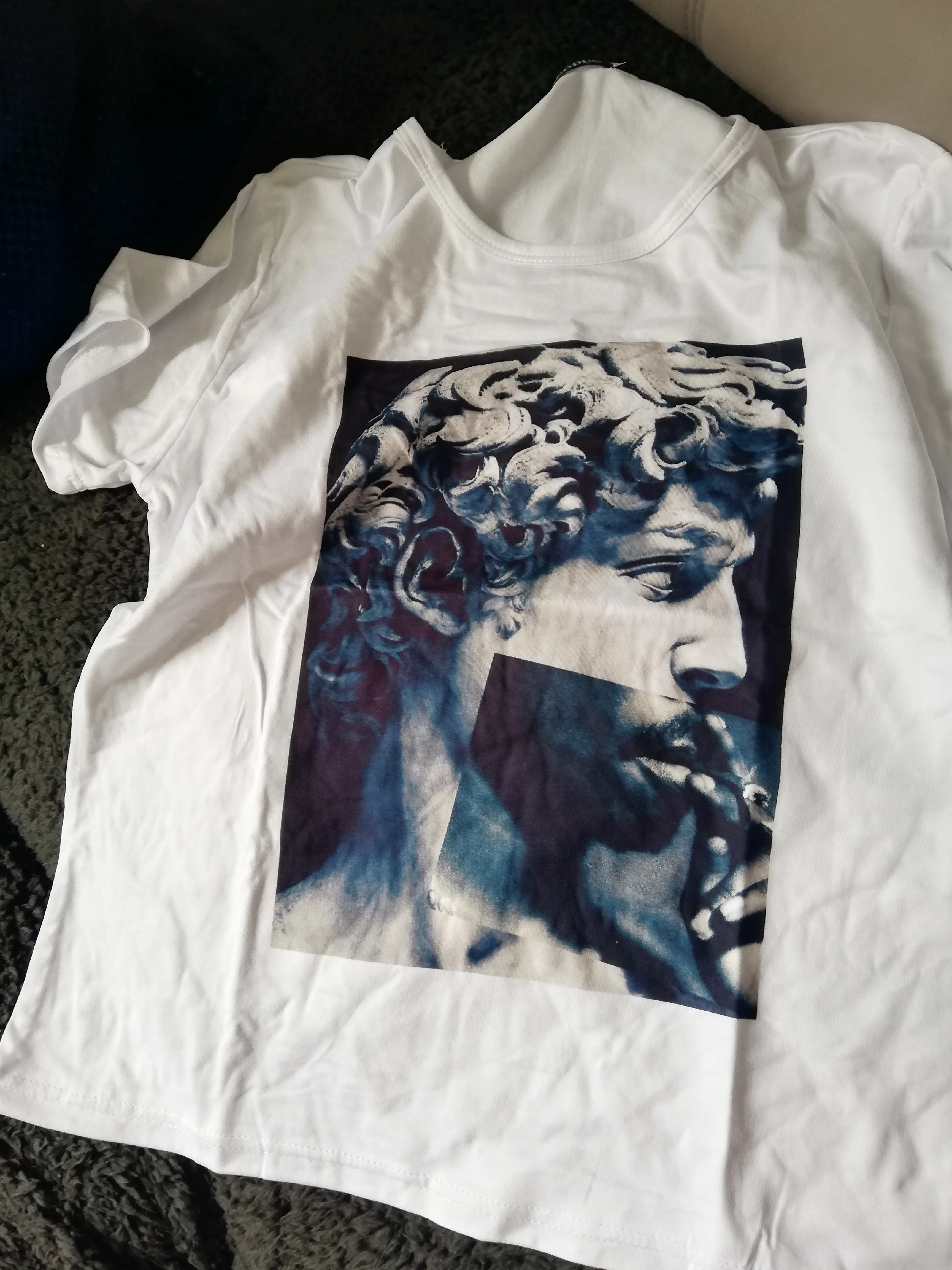 The sizing runs very small. I ordered a medium because I wanted it to be oversized, luckily I'm normally an XS so it still fits, however it's oddly short. The color of the design is also a lot more blue than it appears in the picture. Other than that, the deign seems to be printed on well, and I'm not too worried about it flaking off or anything, and the T-shirt itself is very soft and comfortable!