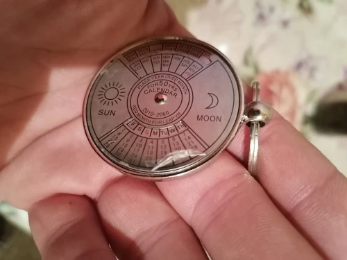 Mini Perpetual Calendar 2022 Keychain Unique Metal Keyring Sun Moon Carving 2010 to 2060 Clock Calendar Key Ring Creative Gifts